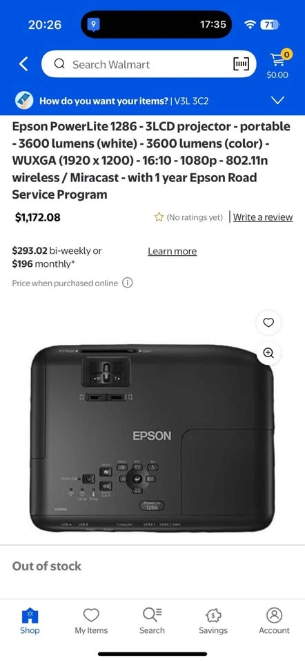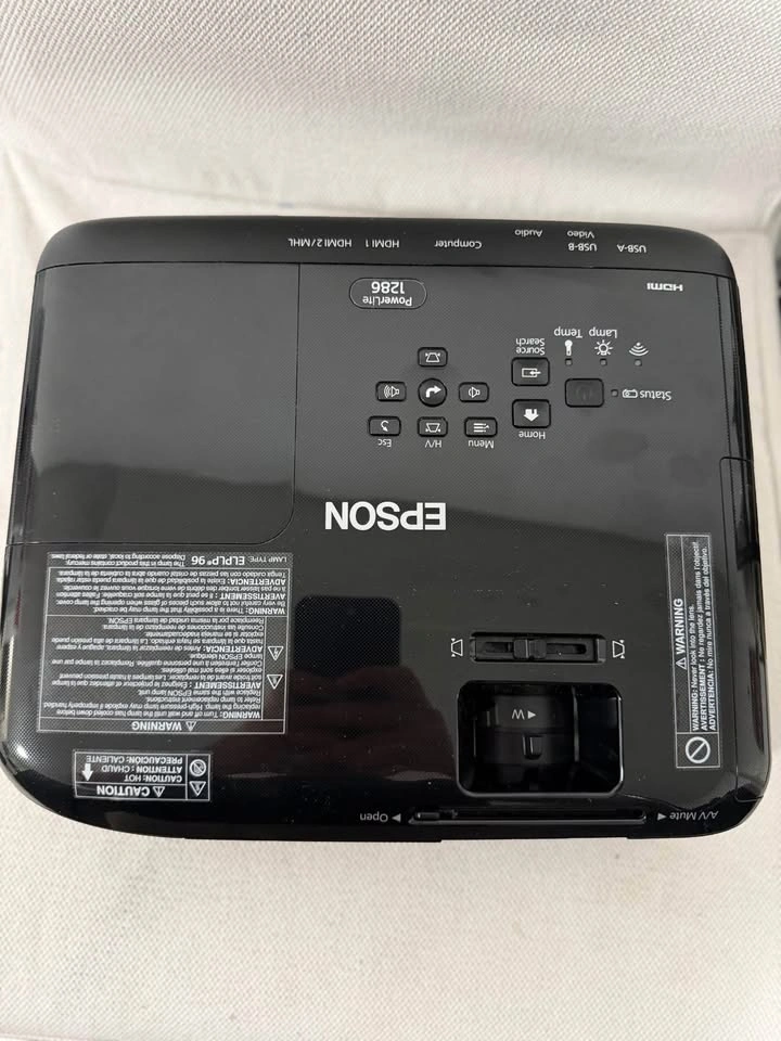 Epson PowerLite 1286 Wireless WUXGA 3LCD Projector ‼️includes a ceiling bracket/mount Native Resolution: WUXGA (1920 × 1200 pixels) — slightly taller than Full HD (1080p), great for presentations, spreadsheets, and detailed charts. Bright and reliable projector — 3600 lumens with crisp Full HD+ WUXGA resolution for sharp images even in daylight. Wireless screen mirroring, HDMI/MHL, VGA, and USB make it easy to connect any device. Lightweight, portable. Perfect for classrooms, offices, or home movie nights. Ready to use and in great condition!