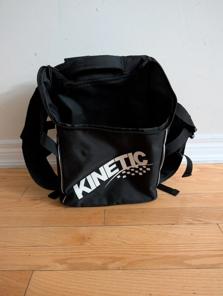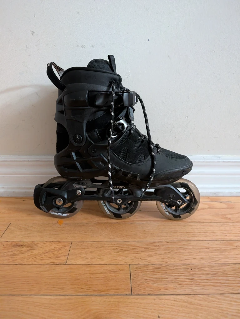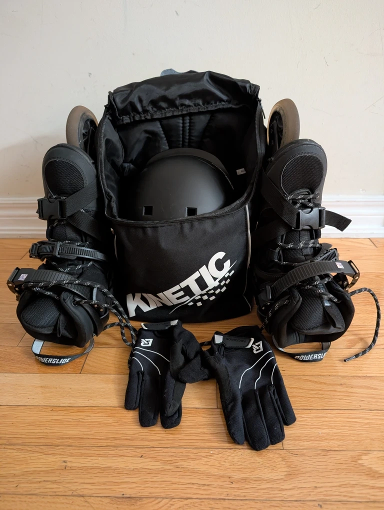 18Selling a pair of Powerslide skates in great condition! They're all black and come with a Kinetic bag, a helmet, and gloves for protection. Perfect for anyone looking to get into inline skating or upgrade their current setup