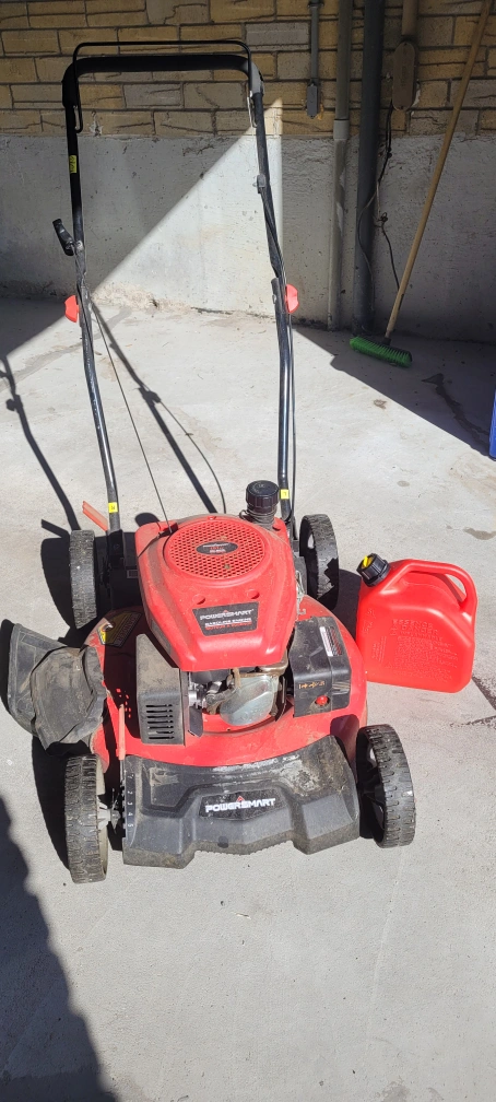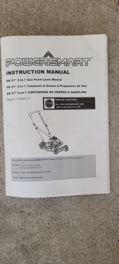 10Selling a PowerSmart 21" 2-in-1 gas push lawn mower. The model number is DB8621C. It comes with the instruction manual and a gas can.
