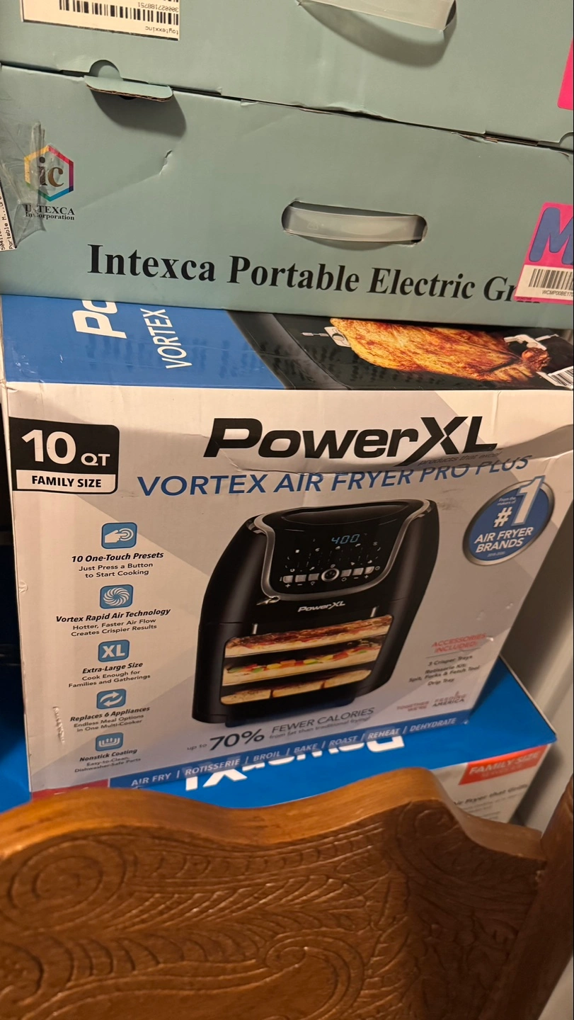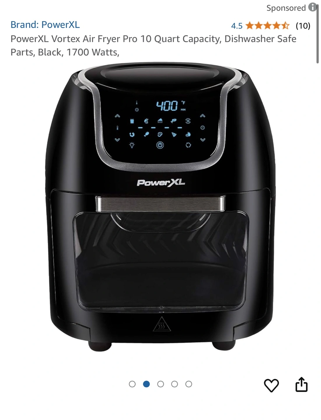 10110 quart family-size air fryer. Features 10 one-touch presets, Vortex Rapid Air Technology, and extra-large size. Replaces 6 appliances. Nonstick coating. Includes accessories. Slightly used