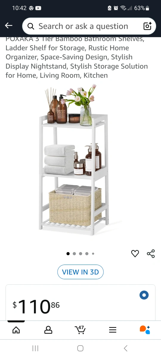 Looking to add some stylish storage to your home? This POXAKA 3-tier bamboo bathroom shelf is perfect for organizing your space! It's great for bathrooms, living rooms, or kitchens. The dimensions are approximately 16.54" wide, 11.81" deep, and 31" tall. It can hold up to 20 lbs open box new