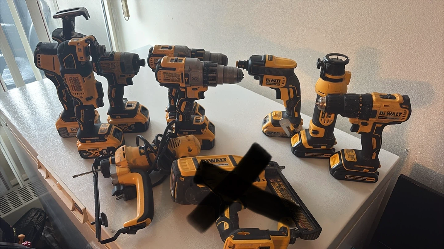 The tools all come with a battery except the nail gun. The tool with the bigger battery are 120$ each and the one with the smaller battery are 100$ each. No low baller