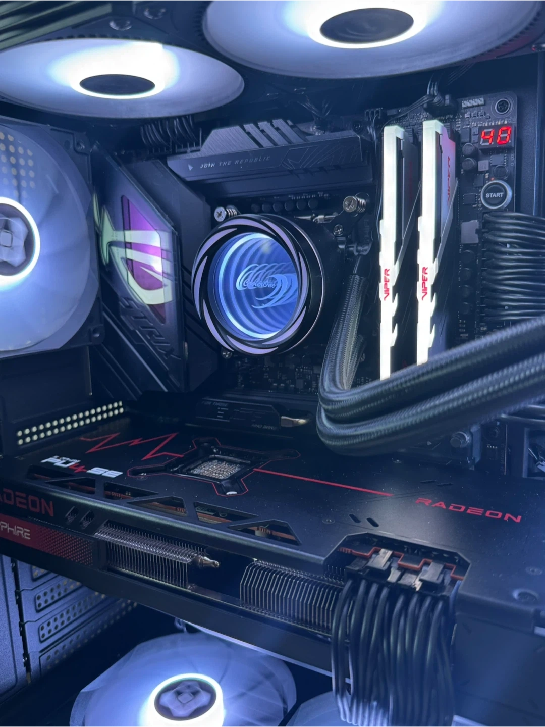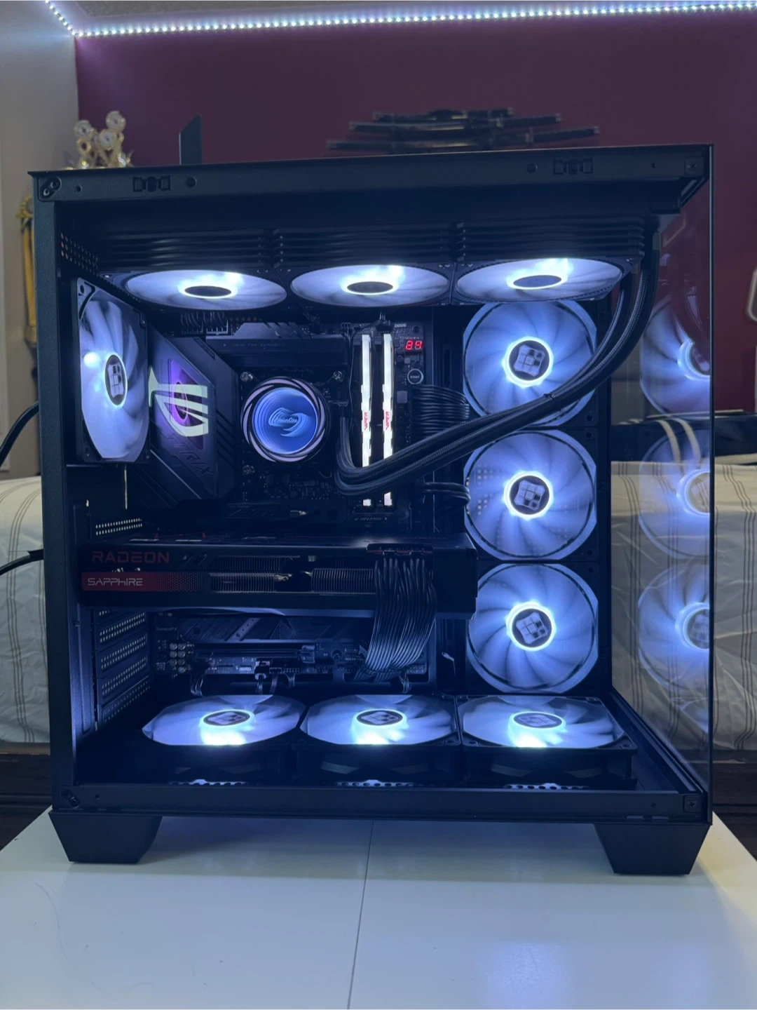 Ultimate Gaming PC – Made for 1440p Ultra/4k High settings. Comes Wi-Fi and Bluetooth ready, runs cool and quiet, super well maintained CPU: Intel Core i9-13900K Motherboard: Asus ROG STRIX Z790-E GAMING WIFI RAM: 32GB (2x16GB) Patriot Viper Venom RGB DDR5-6000 CL36 Storage: 1TB Patriot P400 Lite PCIe 4.0 NVMe SSD Video Card: Sapphire Pulse Radeon RX 7800 XT 16GB Case: FOIFKIN F600 ATX Mid-Tower (6x ARGB fans, panoramic glass) Power Supply: Thermaltake Toughpower GF A3 ATX 3.0 1200W 80+ Gold Operating System: Microsoft Windows 11 Pro Cooler: Coolerone 360mm RGB AIO Game Performance @ 1080p Ultra / 1440p Ultra: Cyberpunk 2077 – 160+ FPS / 95–110 FPS Apex Legends – 240+ FPS / 190+ FPS Warzone – 200+ FPS / 140–160 FPS Fortnite – 300+ FPS / 200+ FPS Red Dead Redemption 2 – 170 FPS / 115–130 FPS Valorant – 400+ FPS / 350+ FPS Starfield – 130 FPS / 85–95 FPS PC would cost $3500+ CAD to build yourself: https://ca.pcpartpicker.com/list/dchQjn PC passes all stress tests (Cinebench, AIDA64, Furmark, etc.) and I can show it working on pickup or through a video if needed. Open to offers or trades for other gaming PCs / parts! Public meetup/pickup preferred.