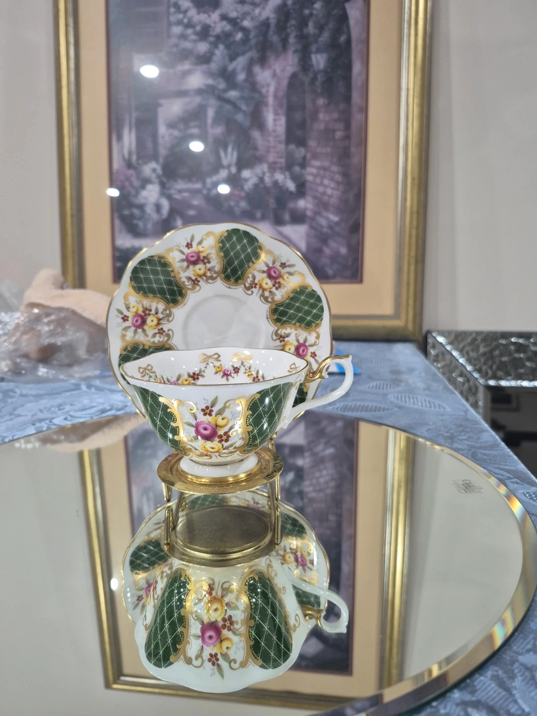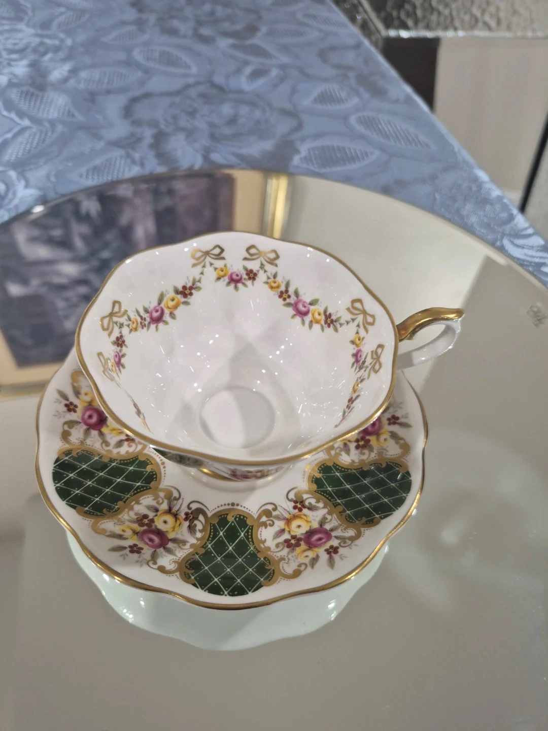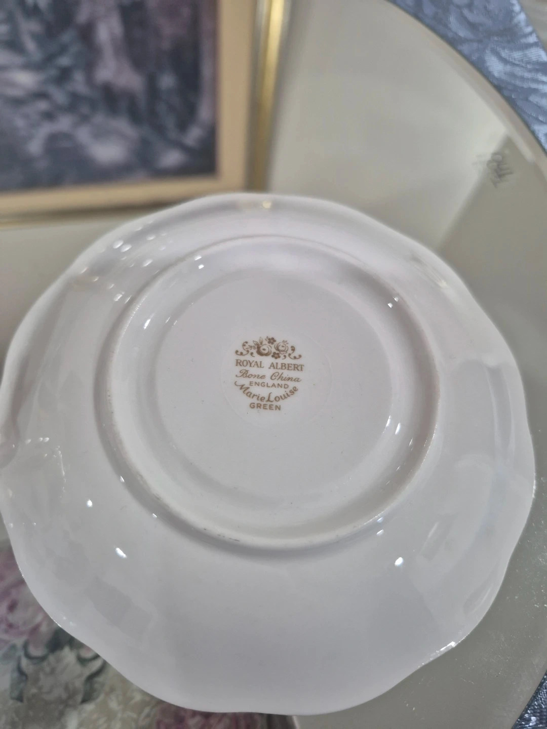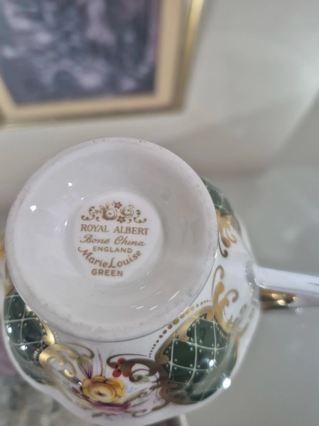 Selling a beautiful Royal Albert Bone China teacup and saucer set in the Marie Louise Green pattern! It's in great condition and would be a lovely addition to any collection