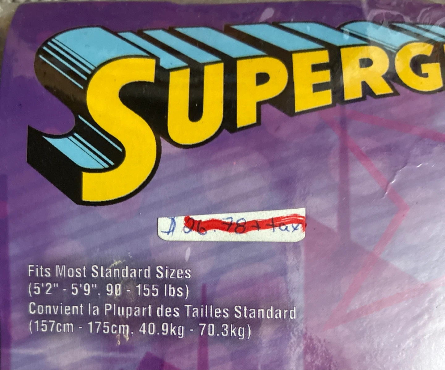 These are new Supergirl adult leggings designed for most standard sizes. They fit heights from 5'2" to 5'9" and weights from 90 to 155 lbs. The leggings feature the iconic Superman "S" shield and "WHAM!" and "BONK!" comic book graphics. They're great for costume parties or themed events!