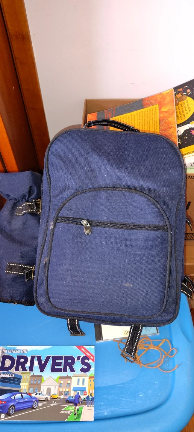 Blue Insulated Picnic Backpack with Utensils and Glasses