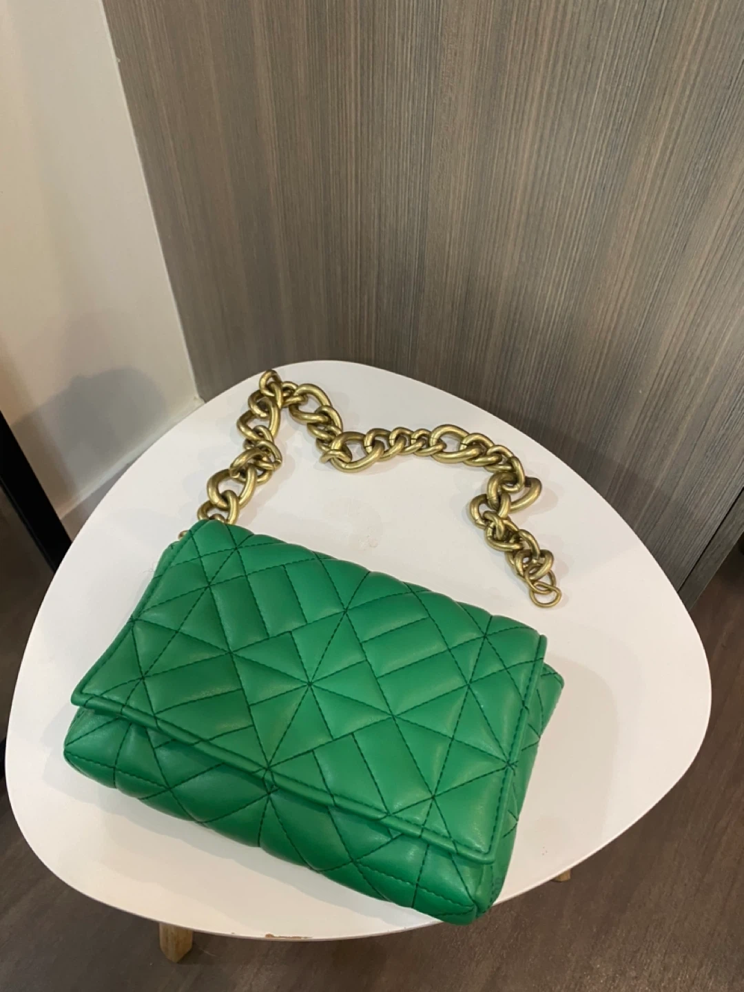 Green Quilted Handbag with Gold Chain