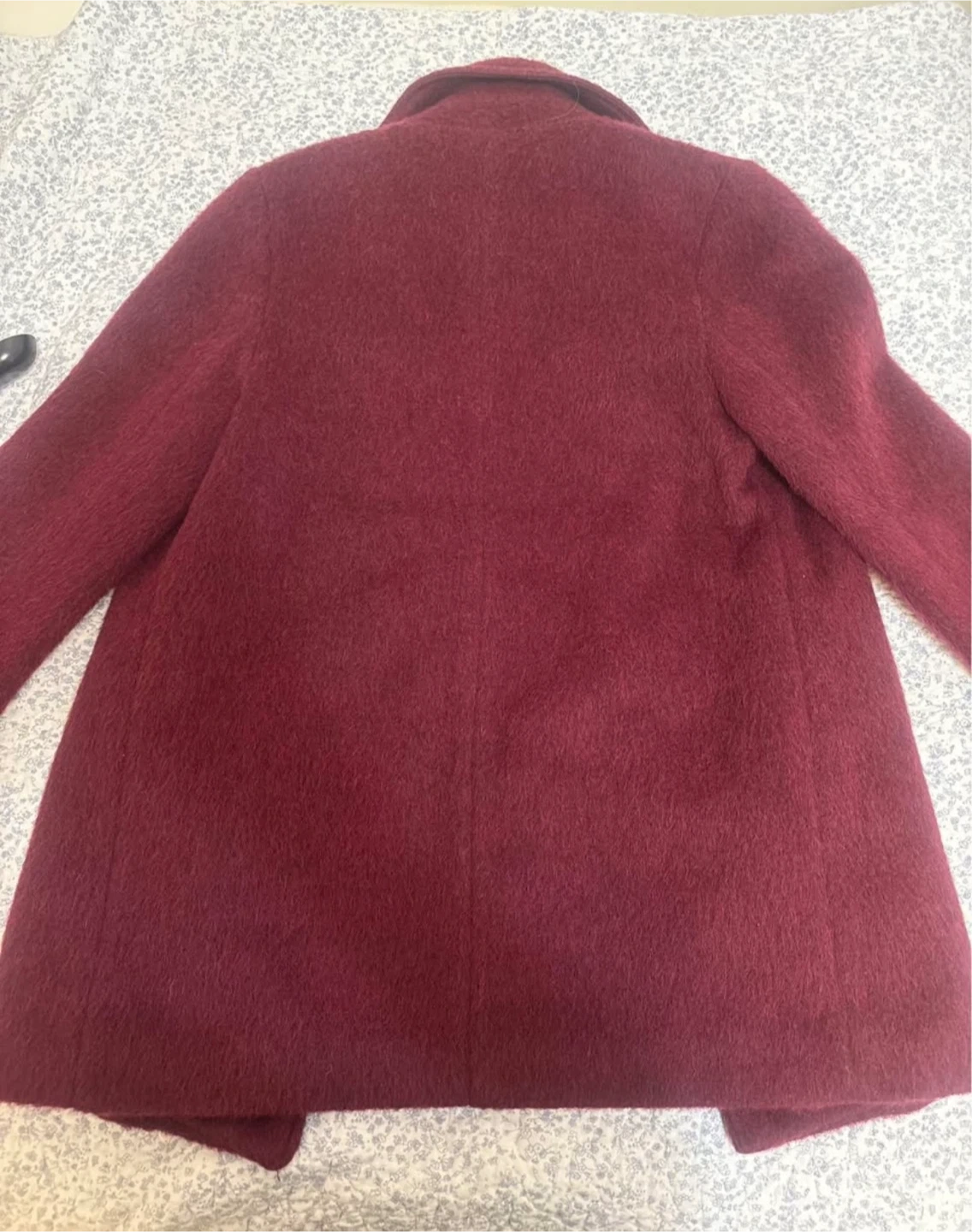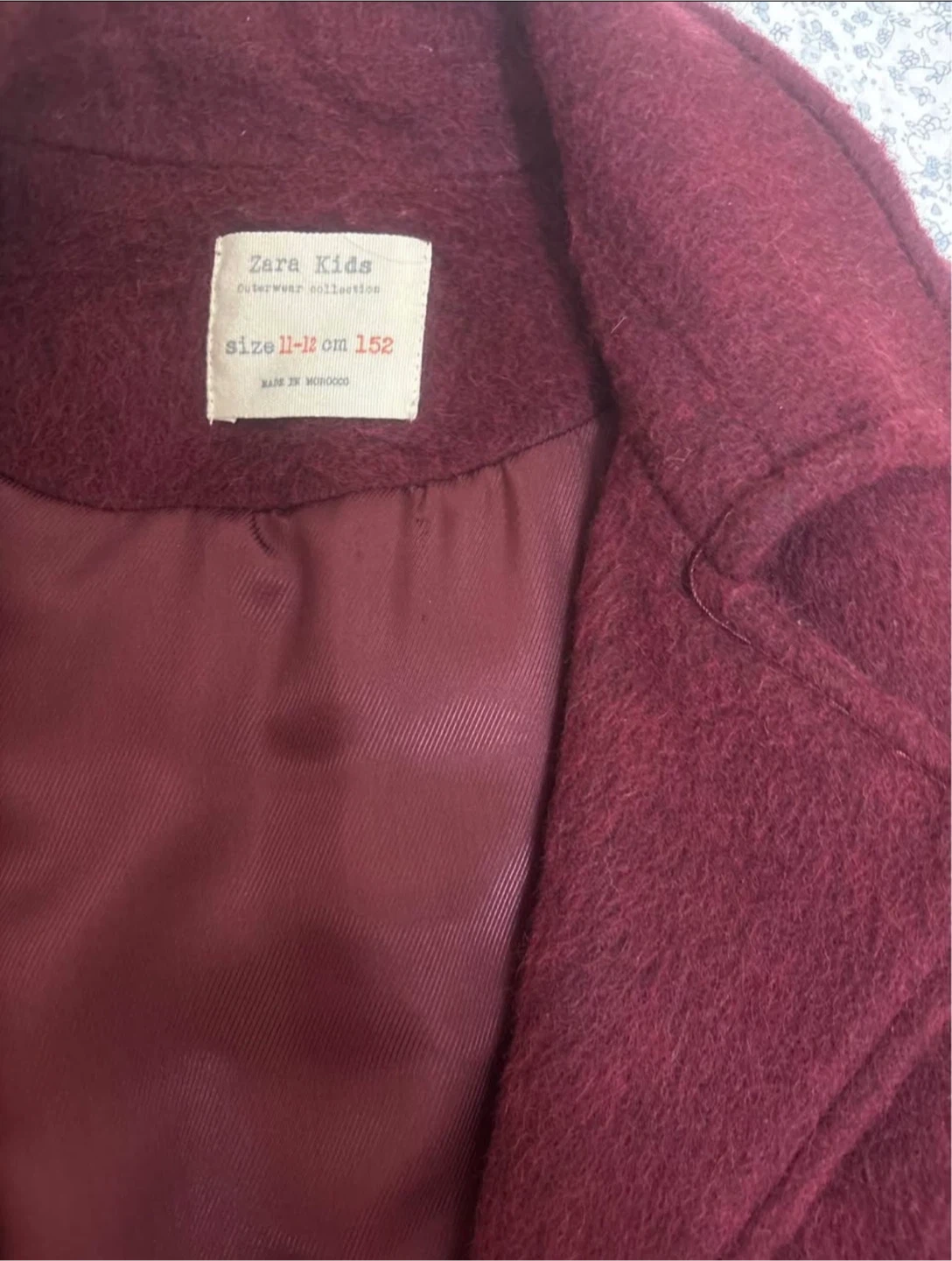 Zara Kids outerwear coat in a lovely burgundy shade. It's a size 11-12 years or 152cm. Made in Morocco. This coat is perfect for cooler weather!