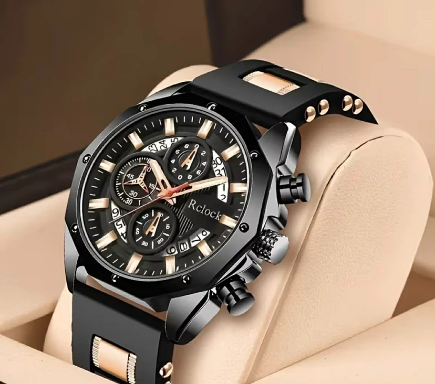 Rclock Men's Chronograph Watch Black Gold