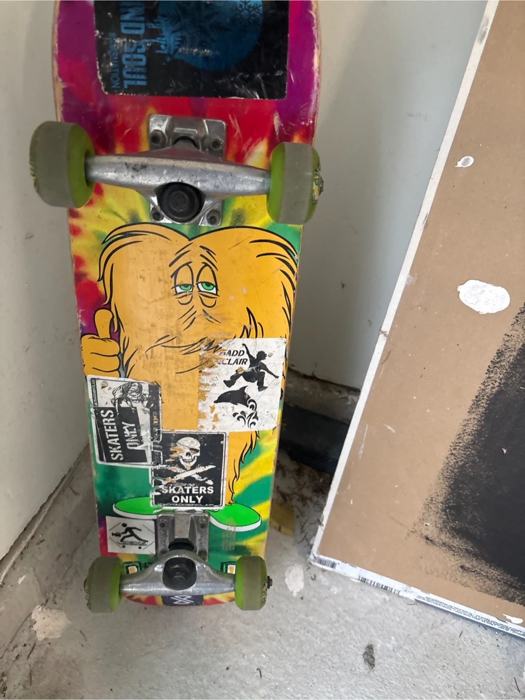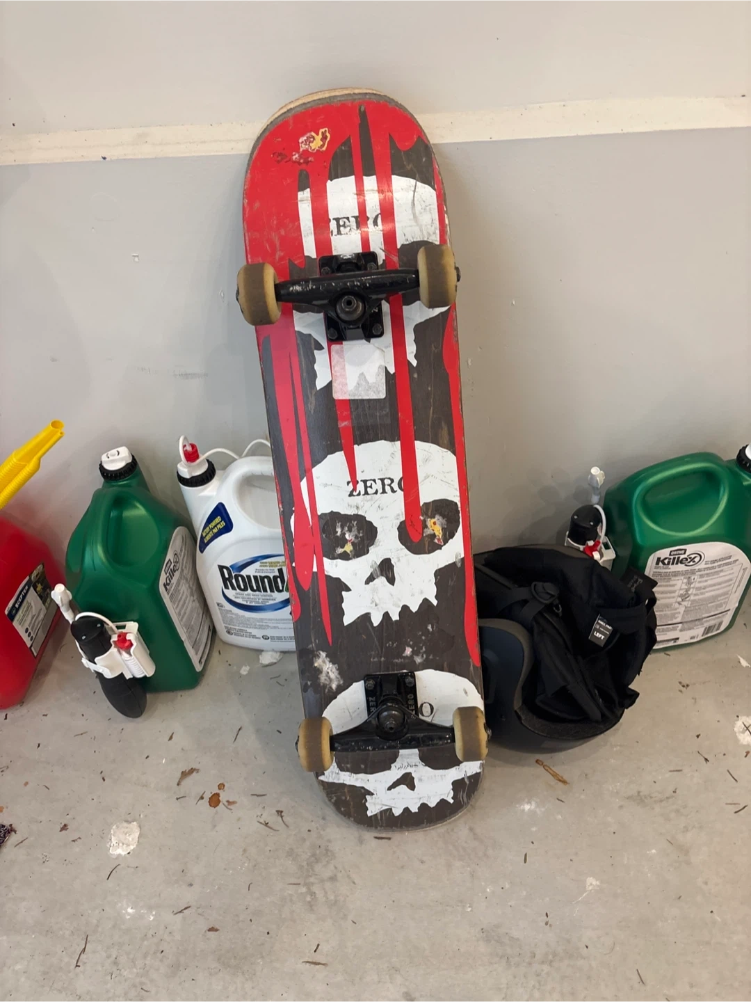 Two skateboards with skull and hand graphics. One is branded Zero and the other is Santa Cruz. Both show signs of use. These decks are ready for street skating.Each 39$ except the samurai one that one is 80$ it’s new