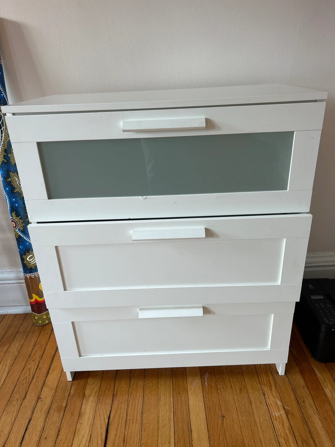 IKEA White 3-Drawer Dresser with Frosted Glass Top Drawer