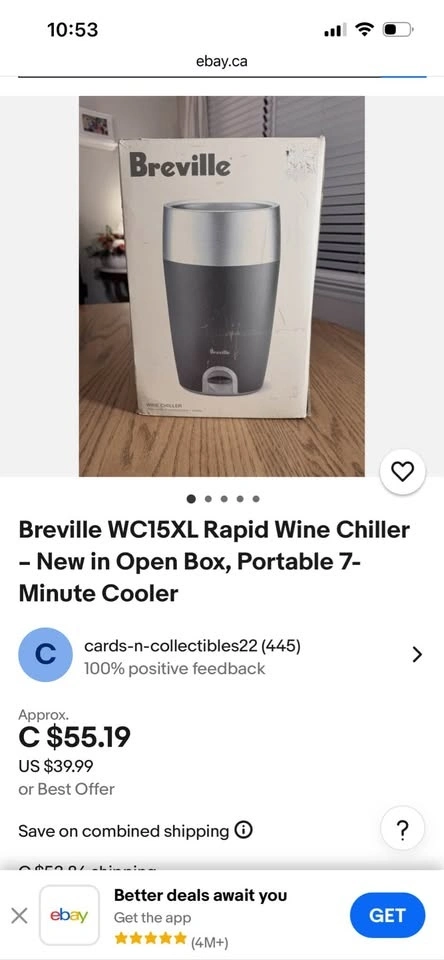 Chill in style with this modern Breville Rapid Wine Chiller. It chills a bottle in under 7 minutes, perfect for last-minute entertaining. Features a sleek stainless steel rim and a matte gray polymer base. This portable chiller is in great condition, used only twice. Regular price was over $100. Pick up and cash only.
