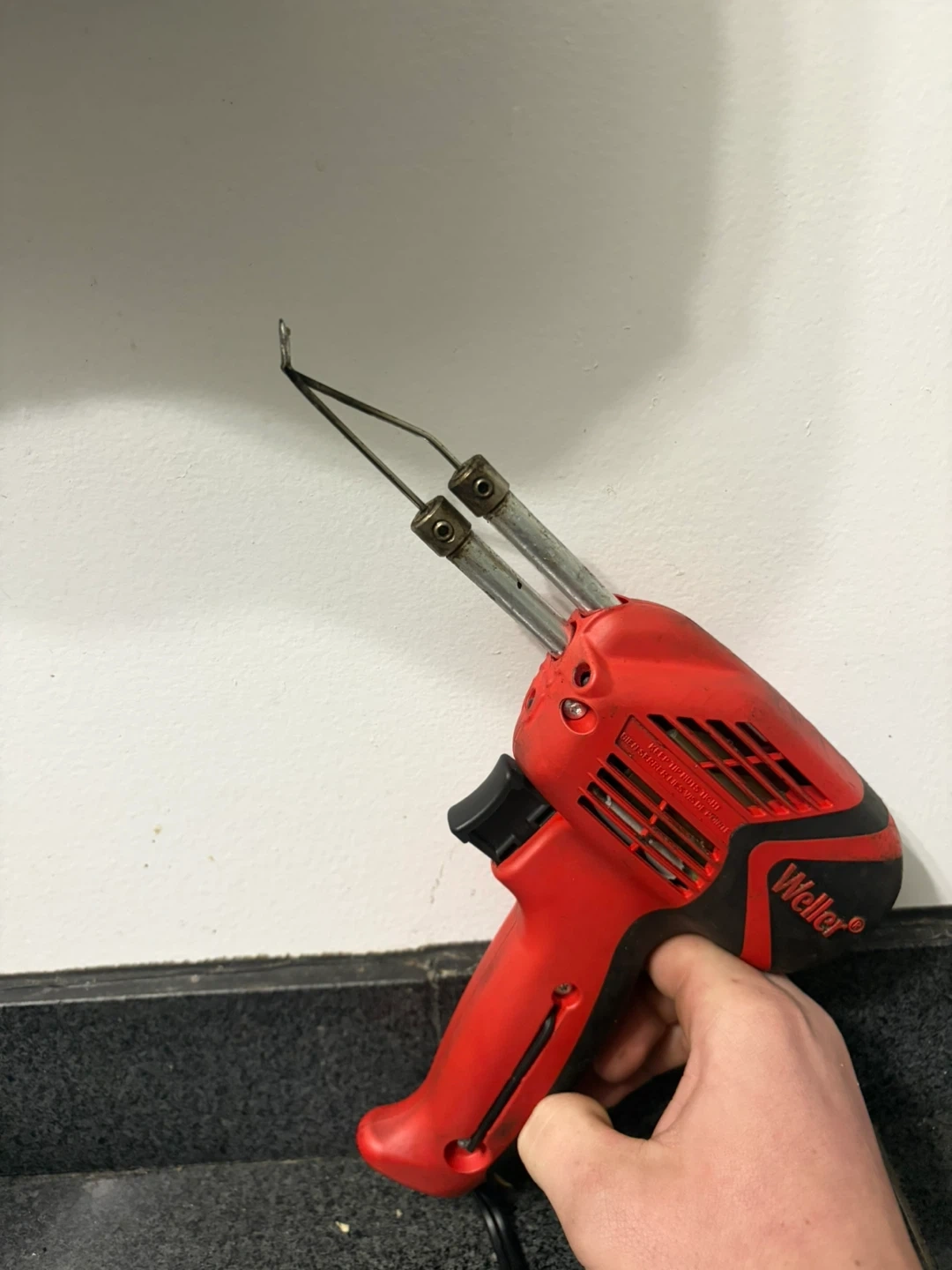 This is a Weller soldering gun and a spool of solder. The solder is 1/4 lb, 0.031 inch diameter, lead-free tin/silver/copper. Temperature rating is 70 to 125°C. It's suitable for electronics repair and DIY projects.