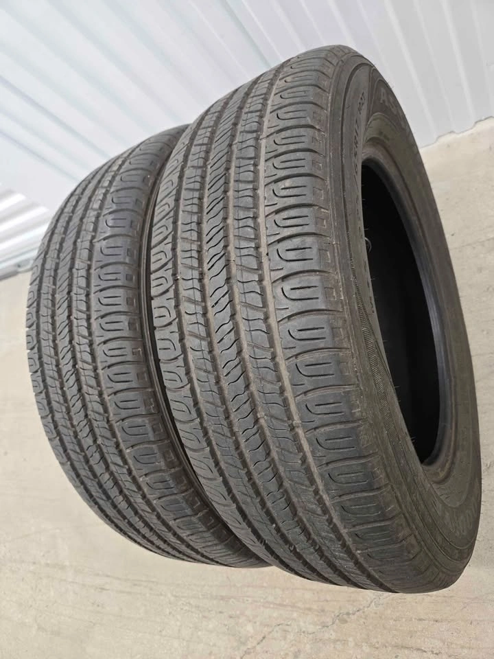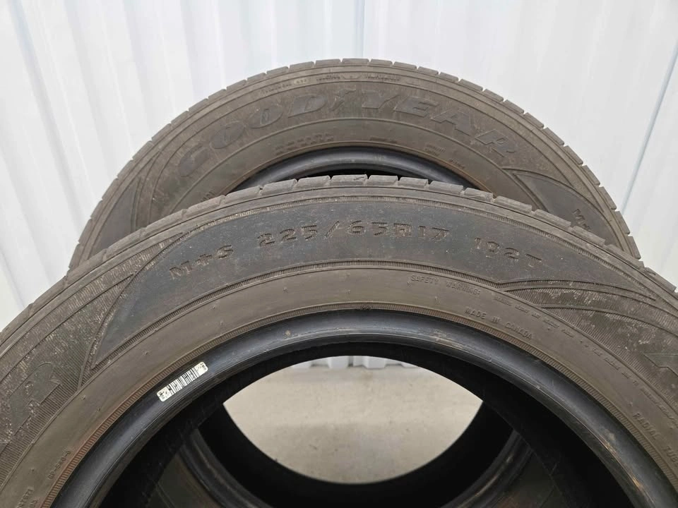 Two Goodyear Assurance all season tires, size 225/65R17. Good condition pair available at an affordable price. Save on buying new.