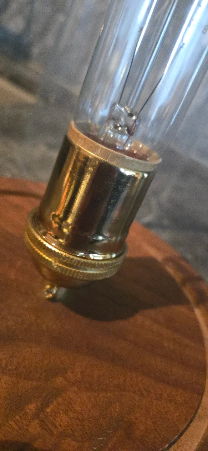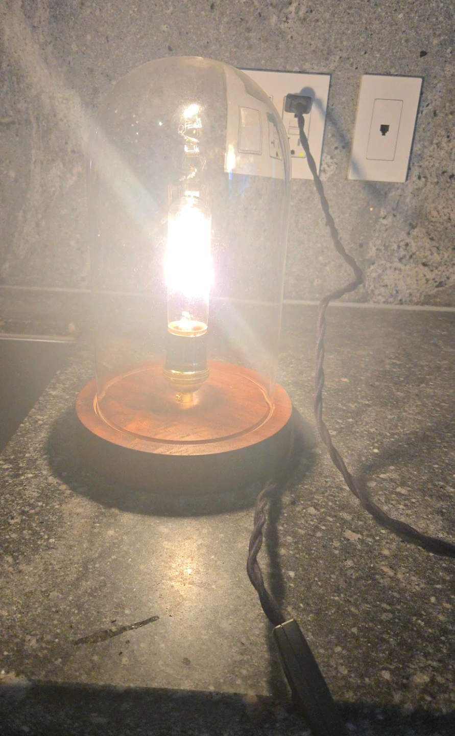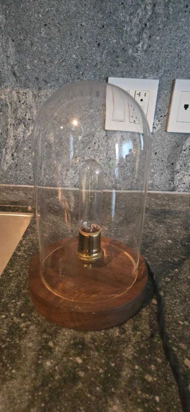 Here's a stylish retro vintage table lamp with filament bulb (included) glass dome, walnut base. Sturdy, like new. Doesn't fit my home decor aesthetics.