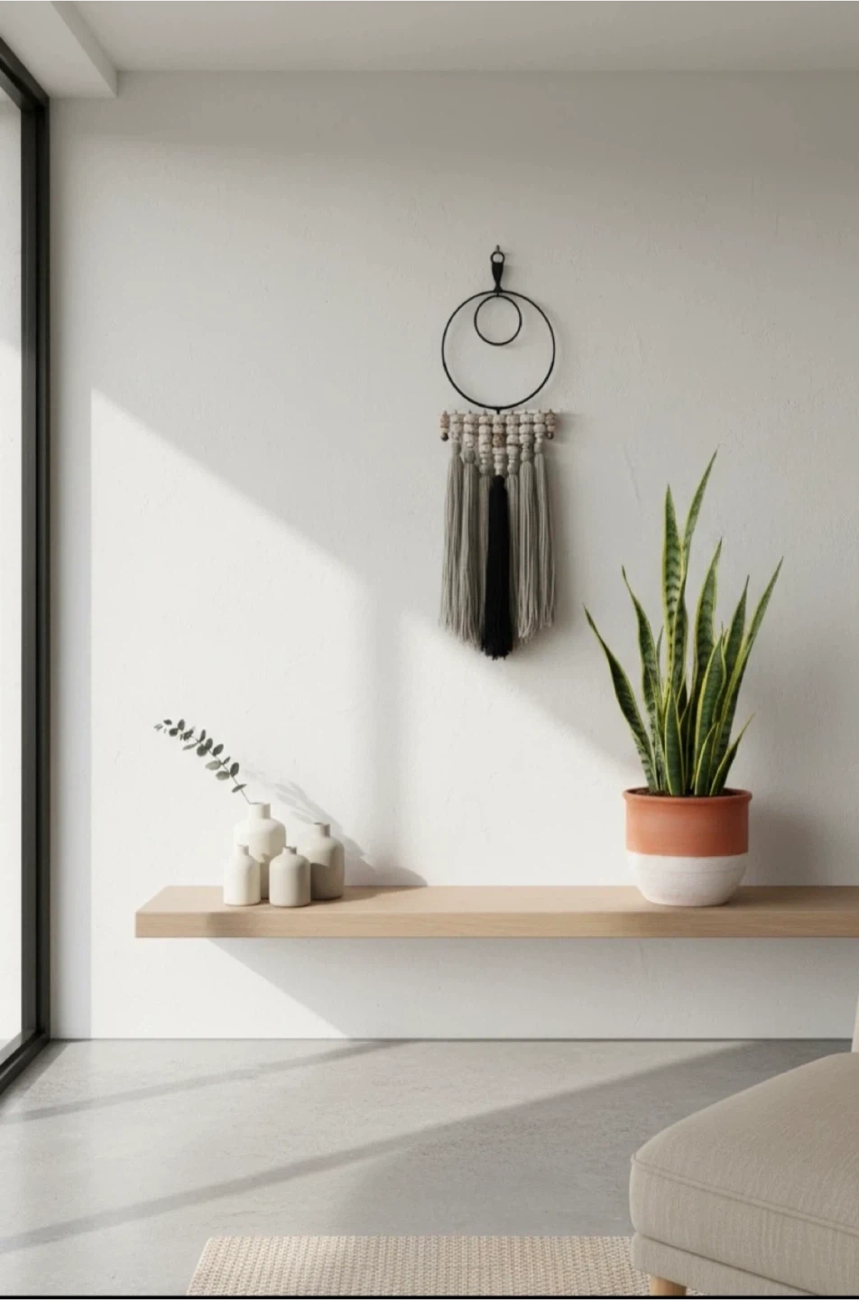 •Transform your space with the soothing presence of this Fiber Wall Hanging, a bold yet elegant fusion of minimal bohemian style and handcrafted fiber detail.