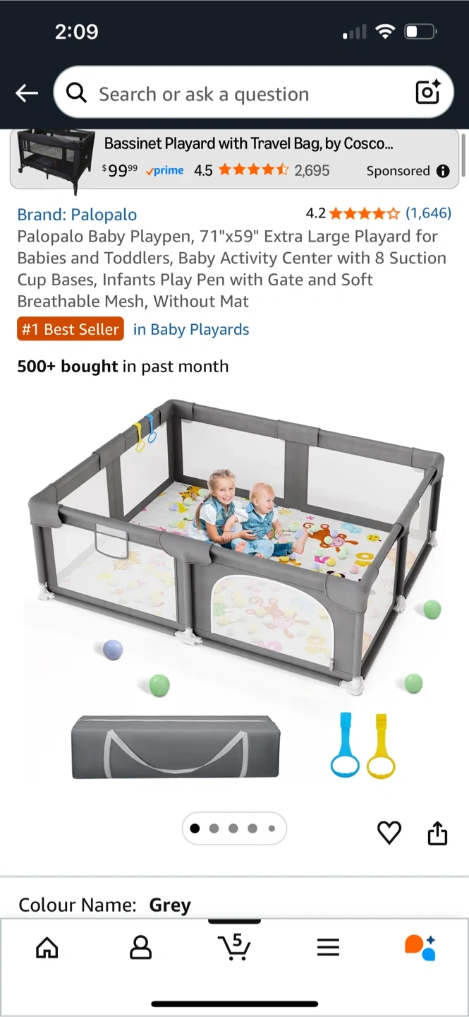 This Palopalo baby playpen is extra large at 71"x59". It's designed for babies and toddlers and includes a gate and soft breathable mesh. It also comes with 8 suction cup bases. Used for a year mostly as toy storage. Does need a decent clean but very easy to clean. Comes with all parts needed.