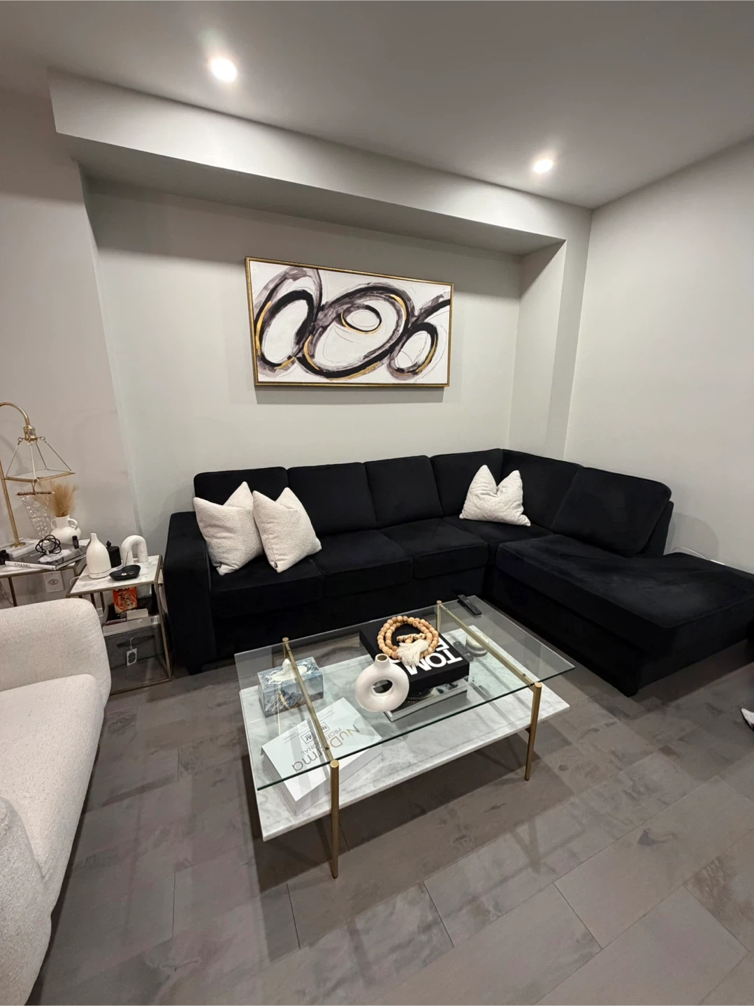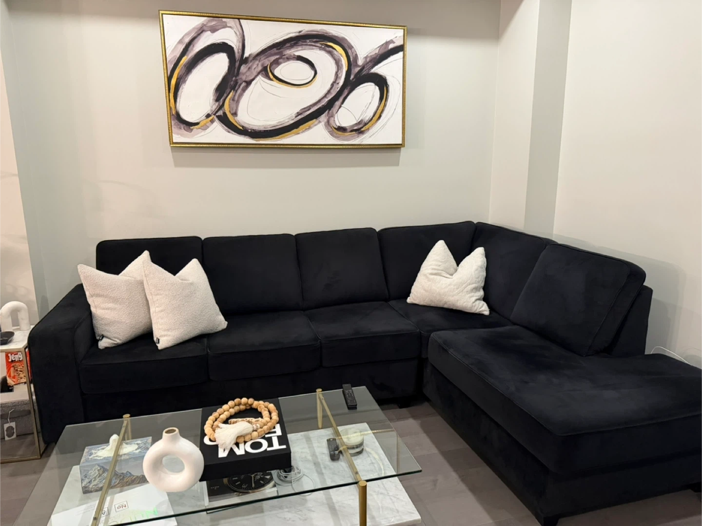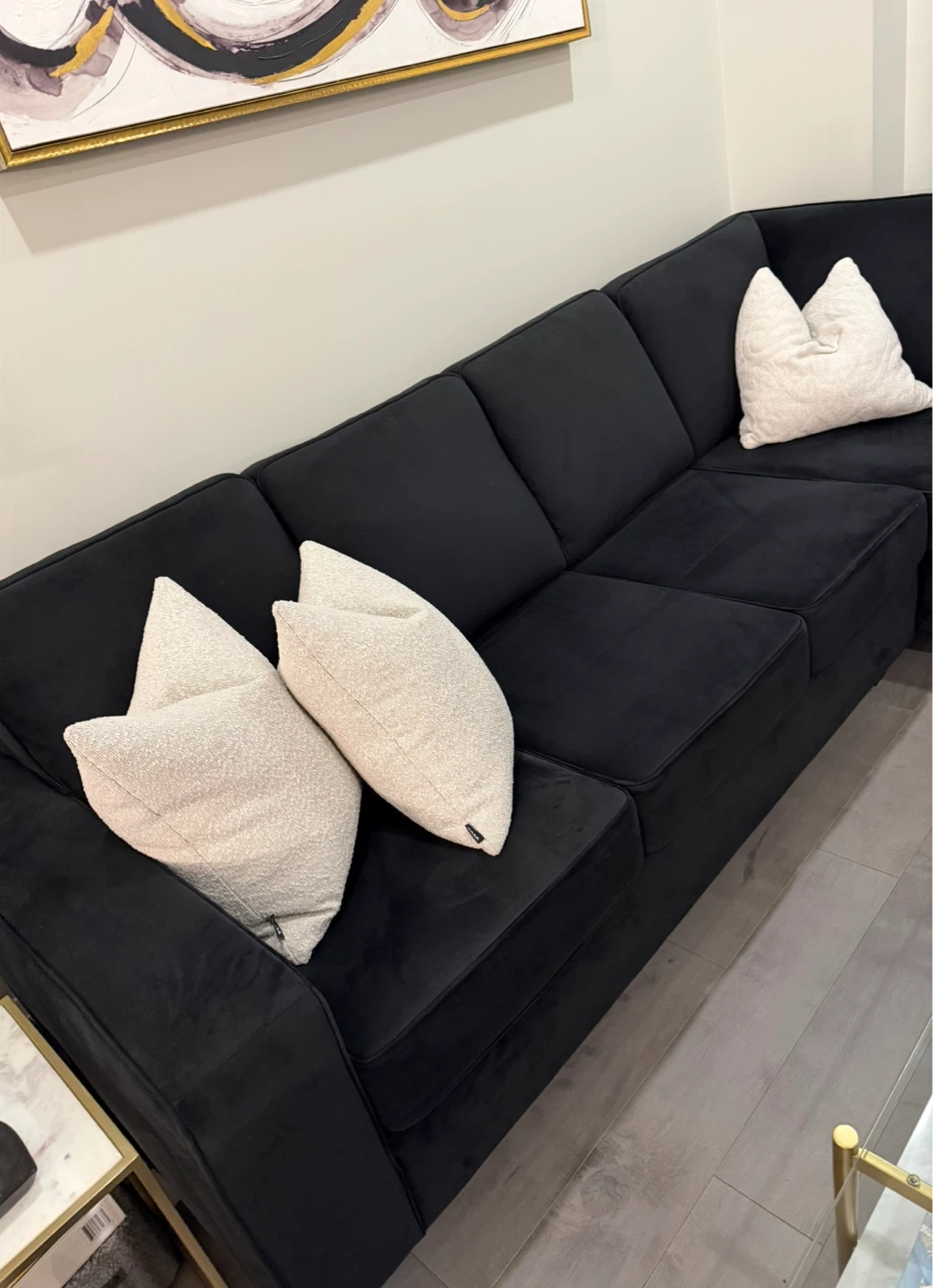 Black Velvet Sectional Sofa with Chaise