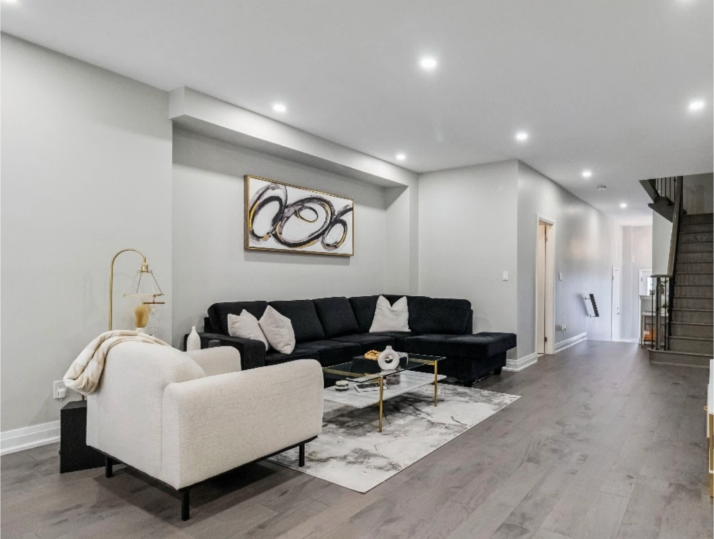 Beautiful modern black sectional couch for sale. This sofa is very comfortable, stylish, and perfect for any living room. The sleek design and neutral black color make it easy to match with any decor.