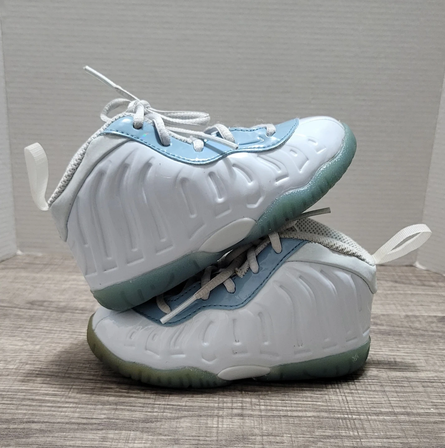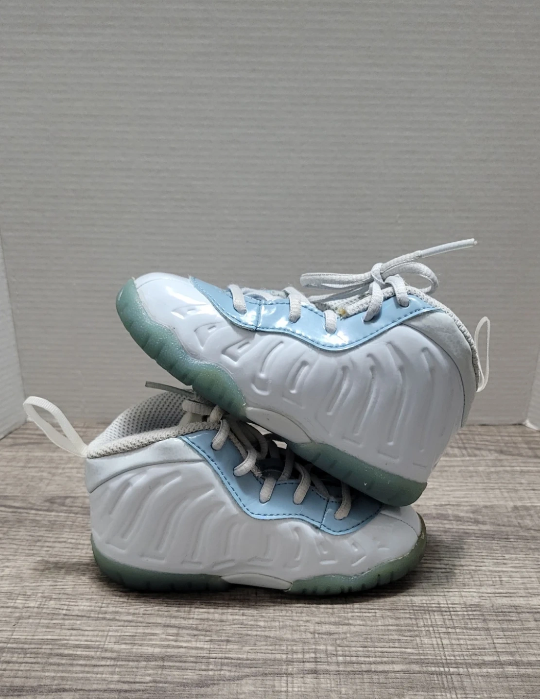 Toddler Nike Little Posite One sneakers. White with light blue accents. Size 6C.