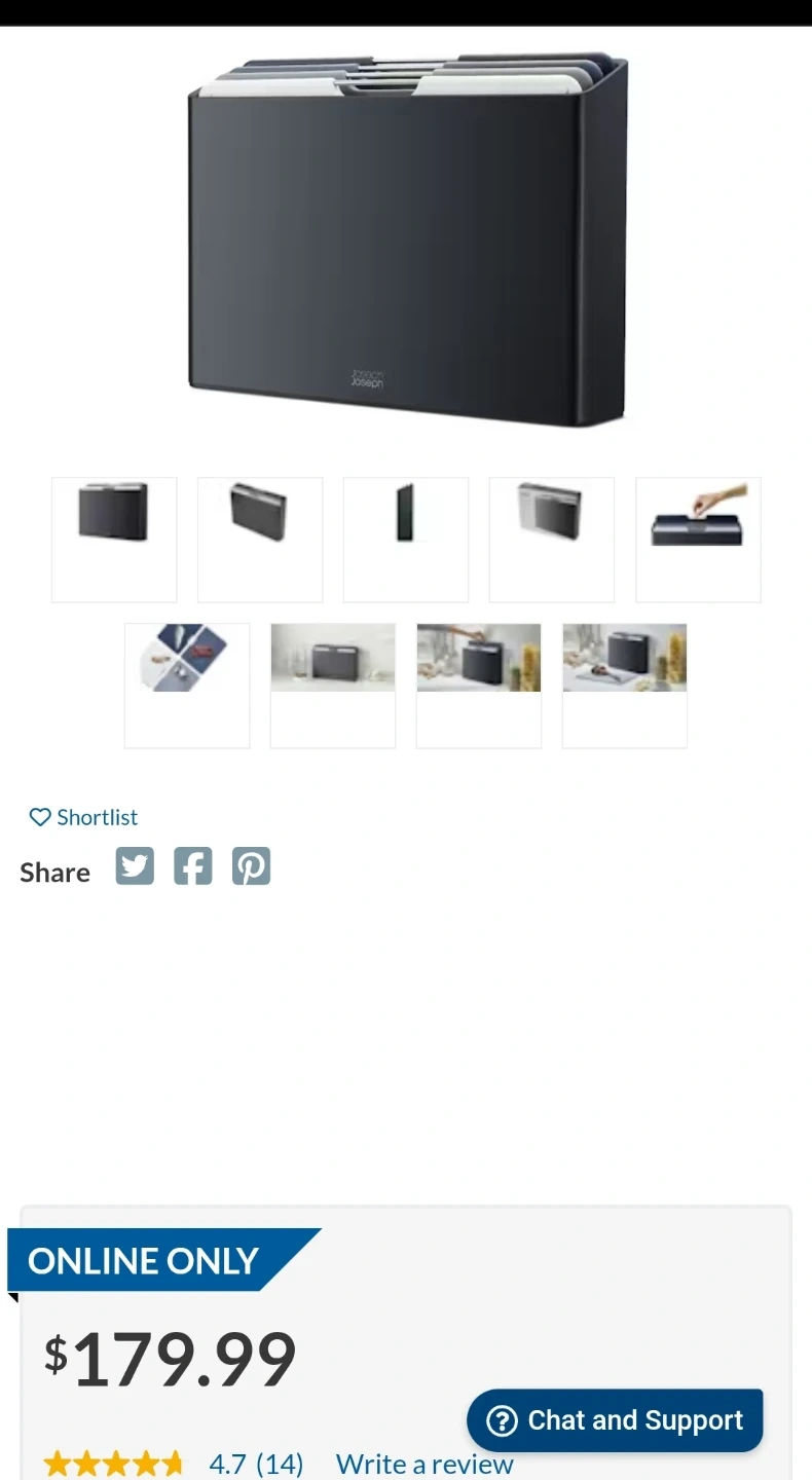 Joseph Joseph cutting board set with storage. Includes multiple boards in various colours. Boards nest together for compact storage in the handy grey case. Non-slip surfaces and durable plastic construction. Only used a couple of times.