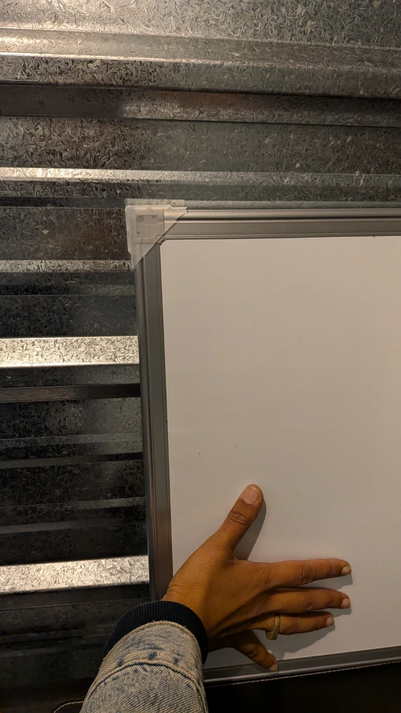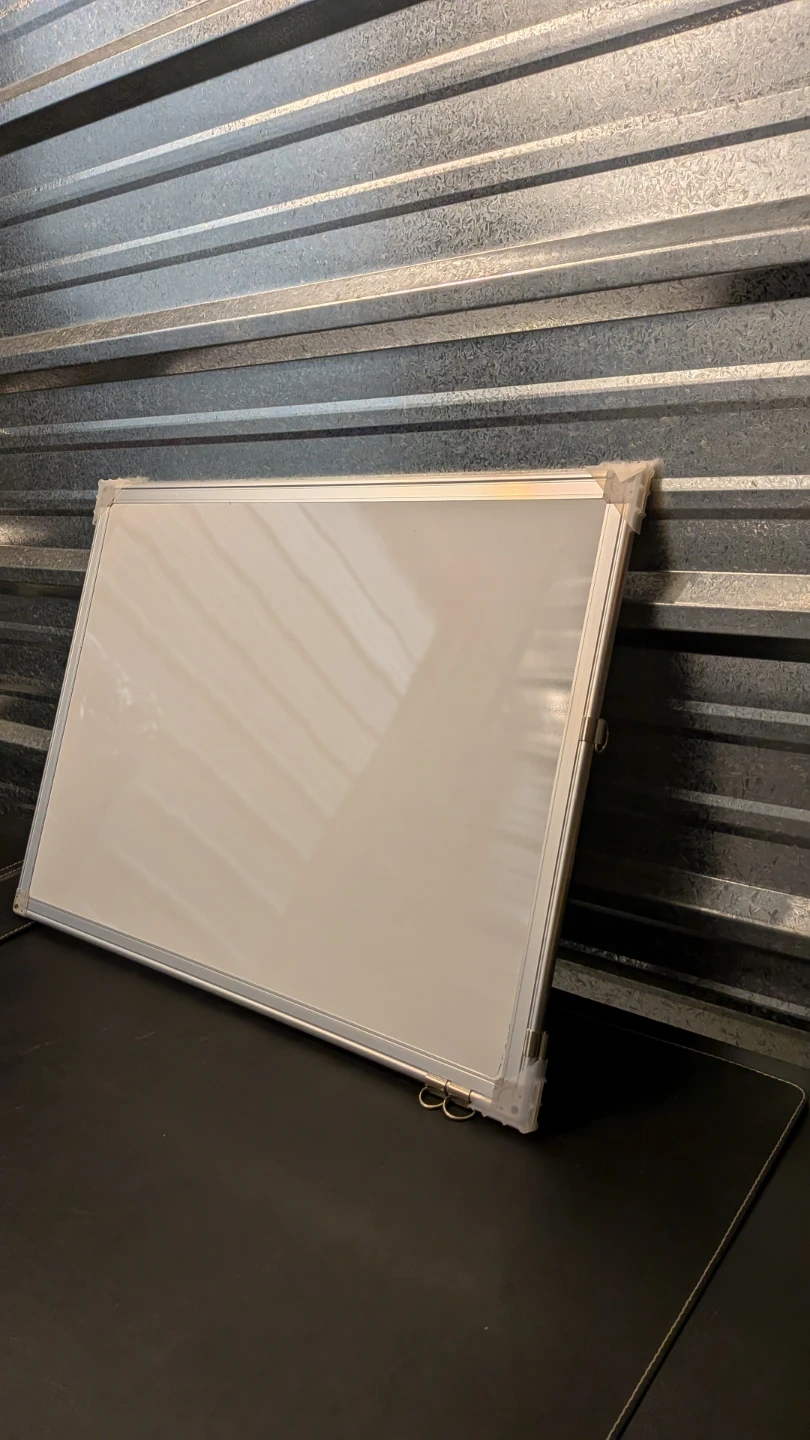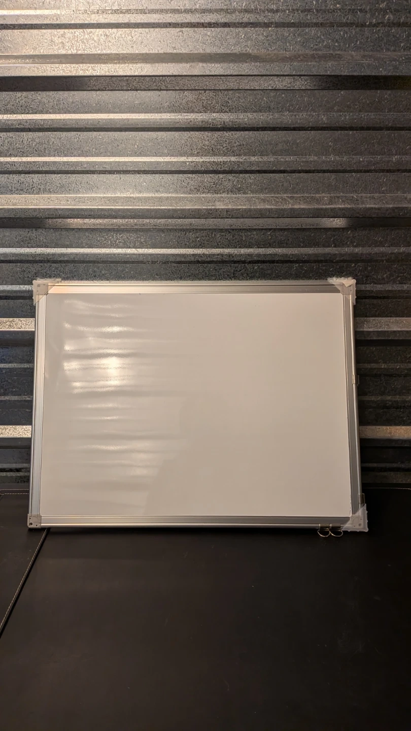 This is a standard whiteboard with an aluminum frame. It's great for jotting down notes or ideas. The surface is smooth and easy to write on.