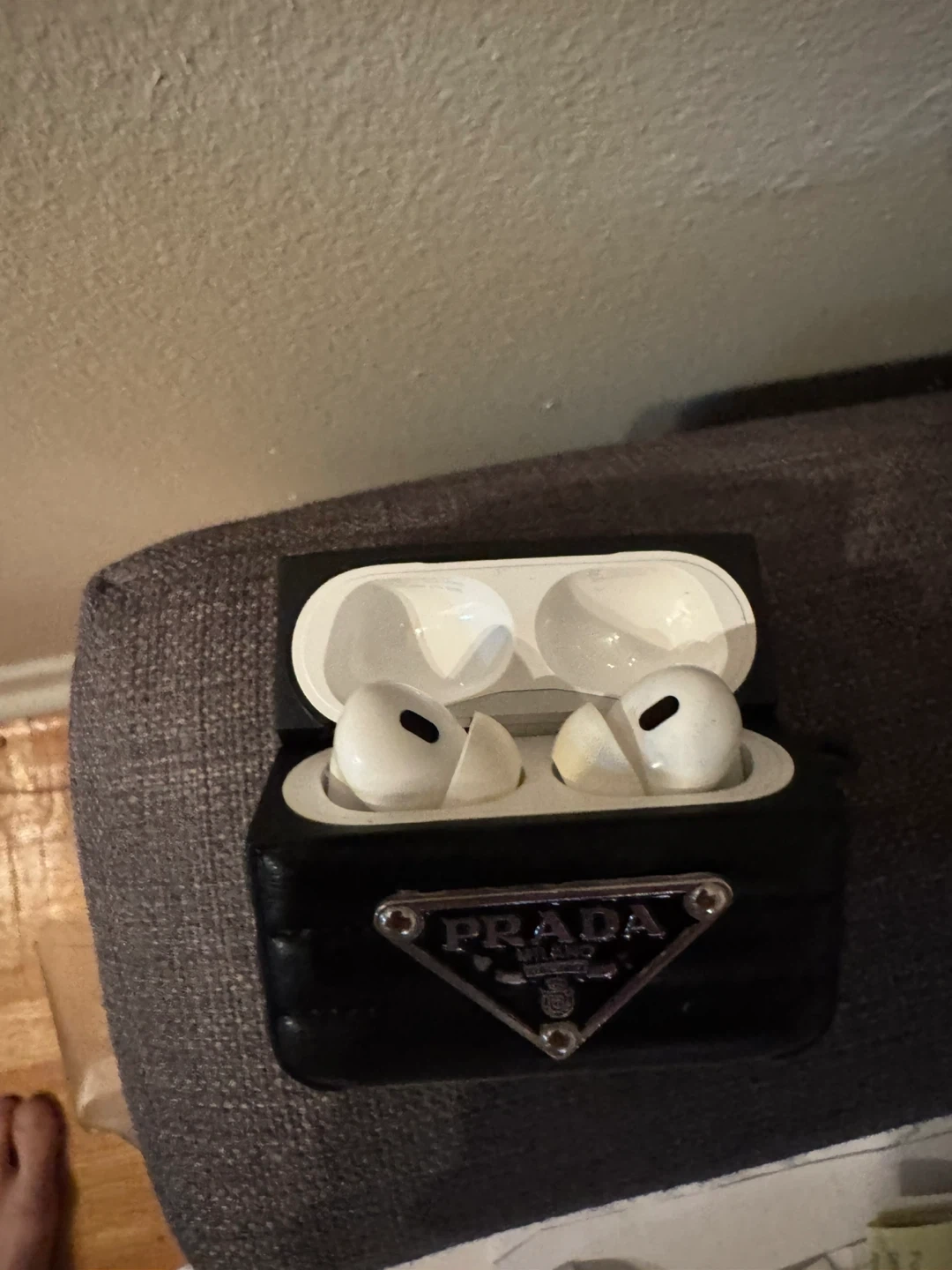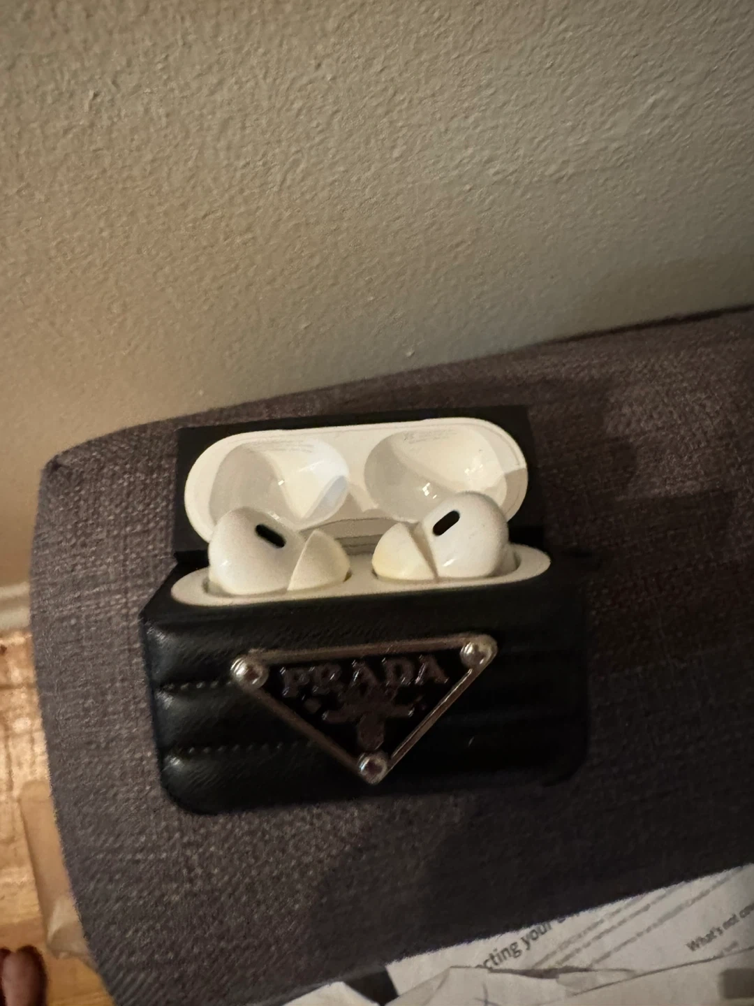 Selling a stylish Prada AirPods Pro case in black! It's in great condition and adds a touch of luxury to your everyday tech. Perfect for keeping your AirPods safe and looking good π΄ββ οΈπͺ½π―πΎππ«
