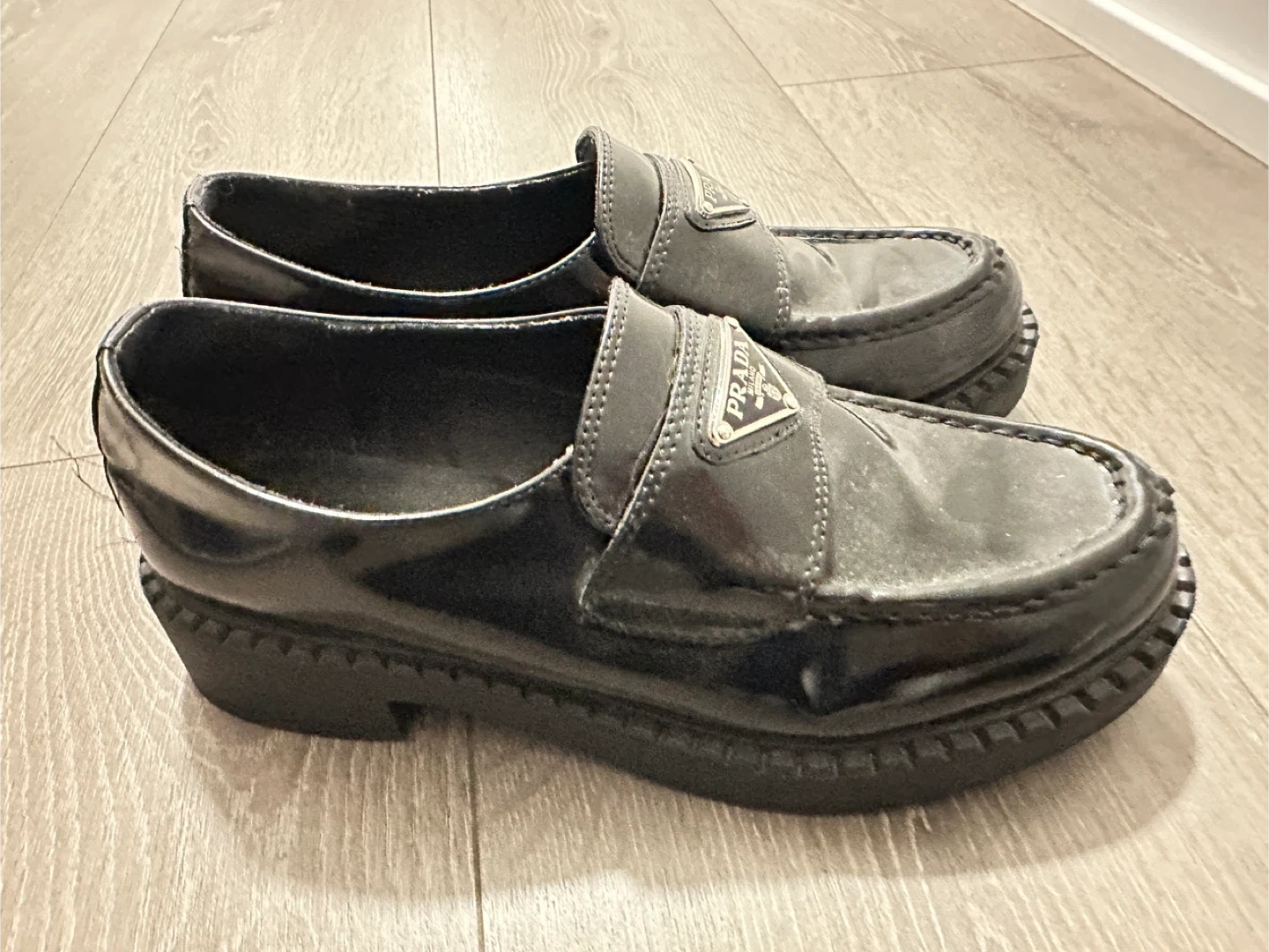 10Selling a pair of authentic Prada loafers in black leather. They are a size 39.