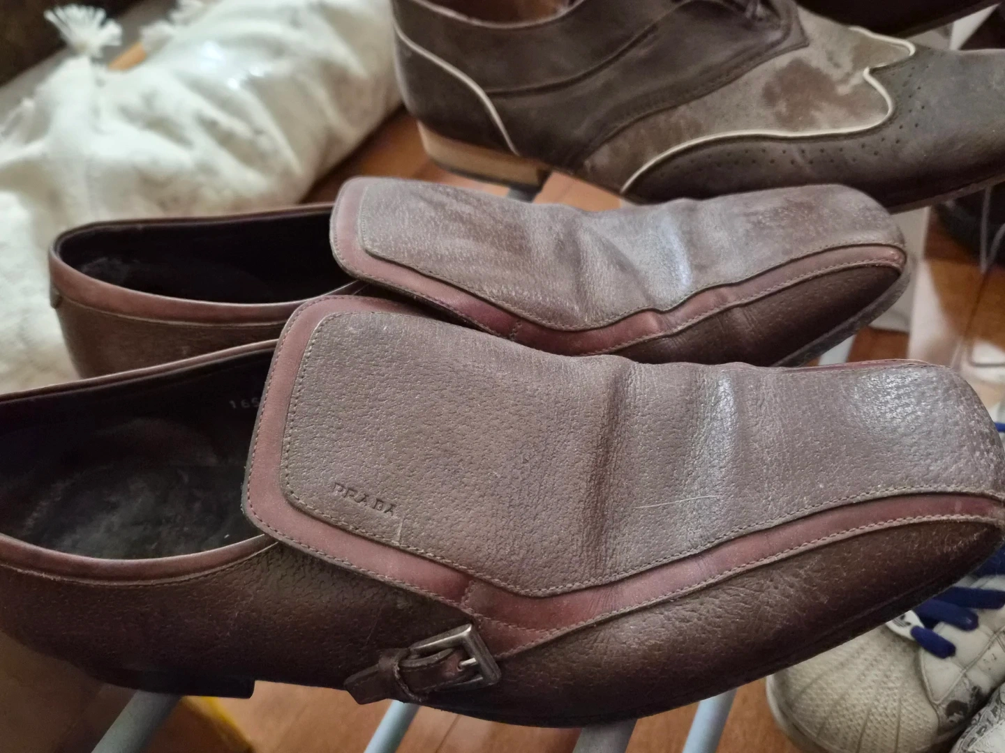53Selling a pair of Prada loafers in brown leather. They show some signs of wear, as you can see in the pictures, but they're still in good condition for everyday use. Made in Italy.