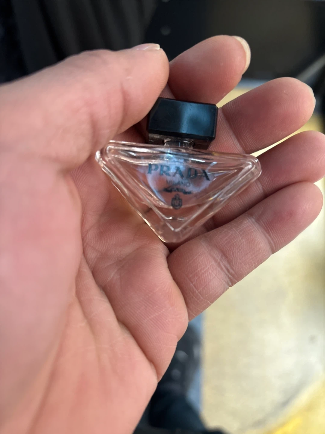 33Selling a cute miniature Prada perfume bottle! It's a great little collectible or perfect for travel. The bottle is clear with the Prada Milano logo on the front.