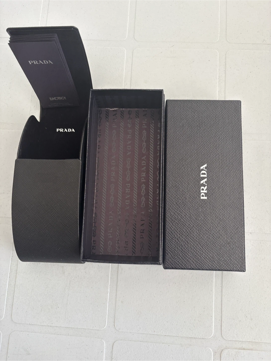 Selling a Prada sunglasses case, comes with the original box. It's in great condition and ready to protect your favorite shades