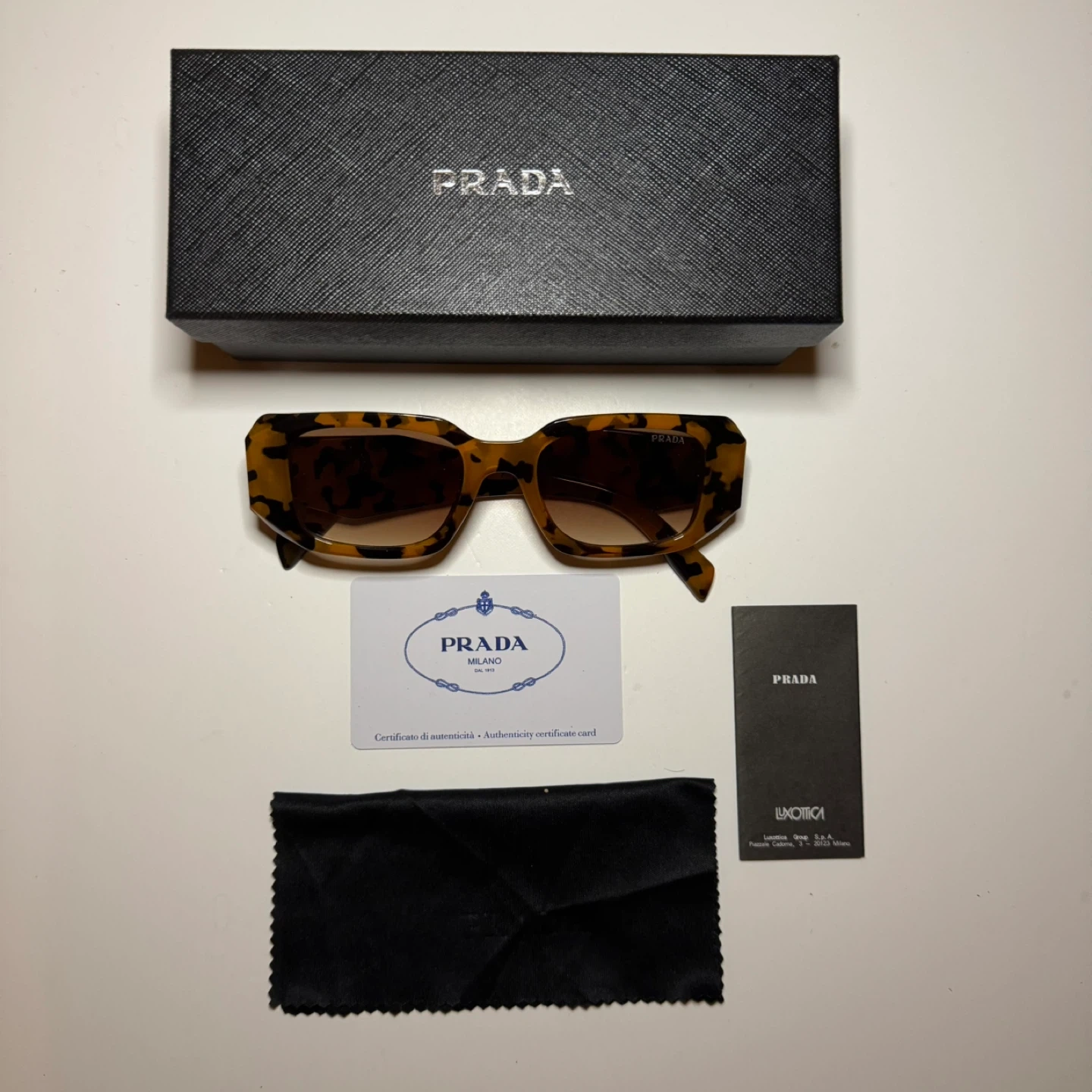 Selling a pair of Prada sunglasses in a stylish tortoise shell pattern. They come with the original box, authenticity card and cleaning cloth. These sunglasses are in excellent condition and ready for a new owner!