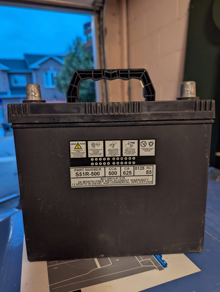 Selling a Prairie Battery, part number S51R-500. It has a CCA of 500 and a RC of 85. Perfect for your automotive needs! Compatable with Toyota Corolla, Honda Civic, Honda CRV and small and mid size vehicles. Used for 1 month. New battery price is 200 with tax.
