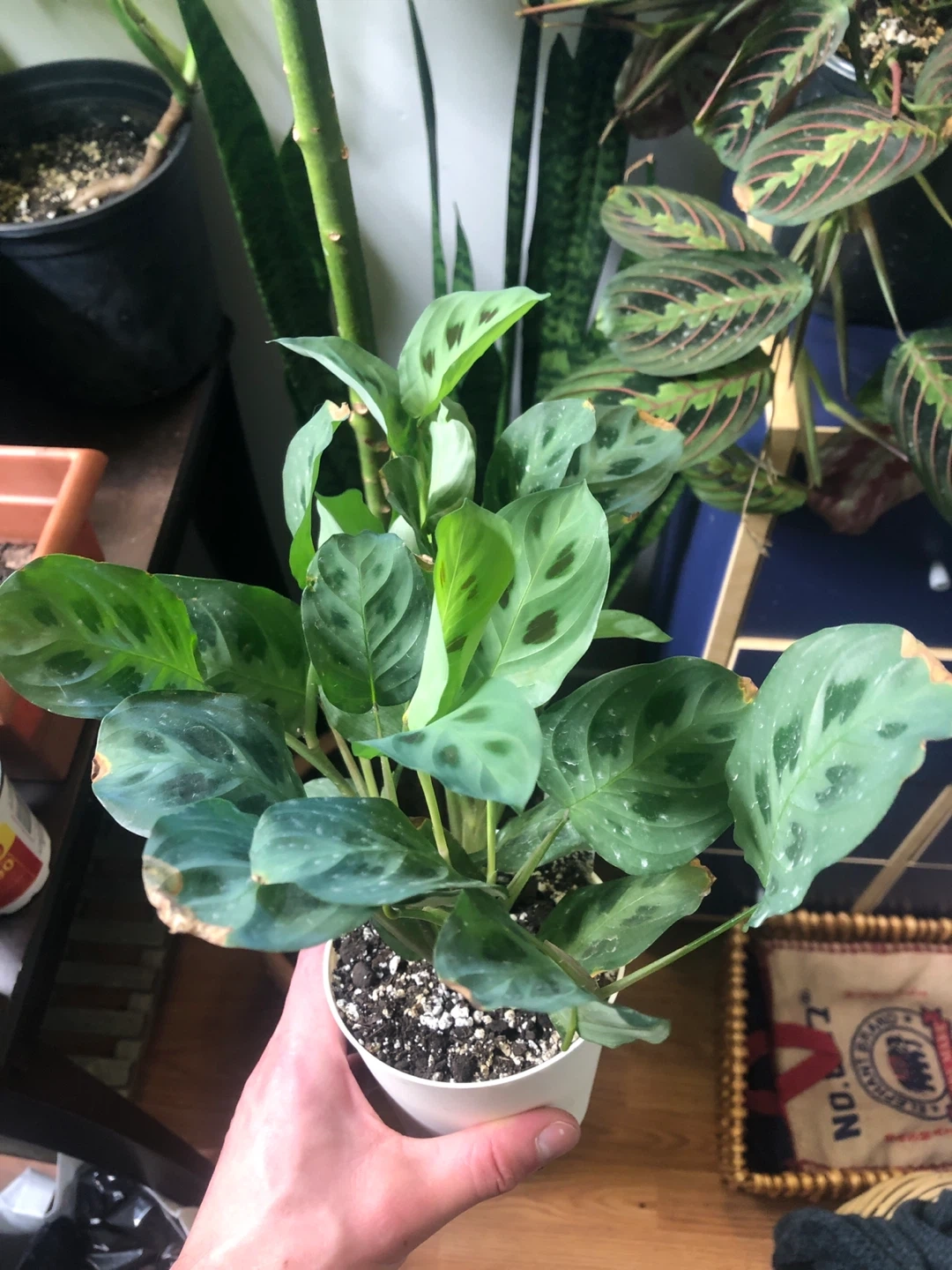 10Selling a prayer plant in a white pot! It's a lovely addition to any indoor space. It's in good condition and ready for a new home