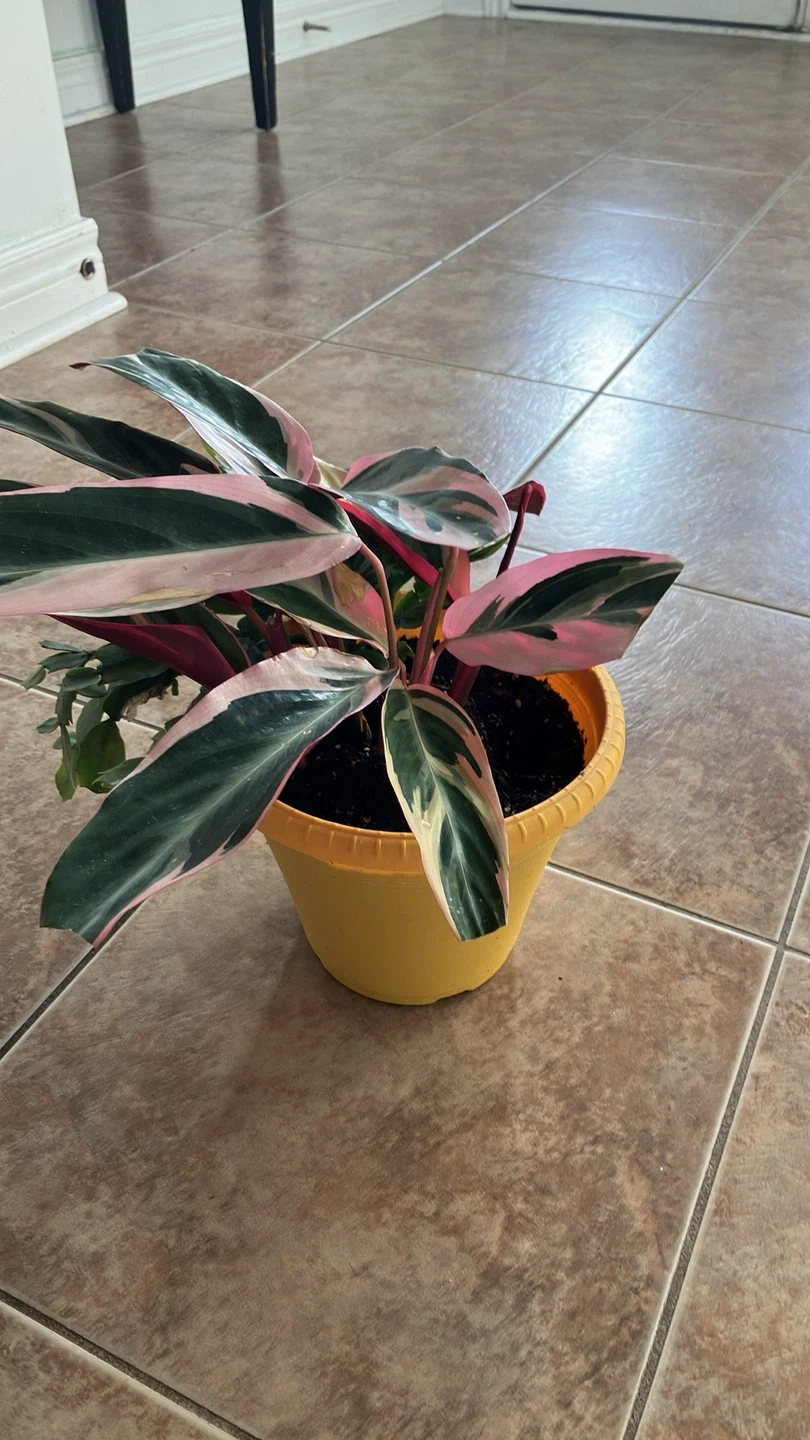 Selling a lovely Calathea plant, potted in a bright yellow pot! It's a beautiful plant that will add a pop of colour to any room