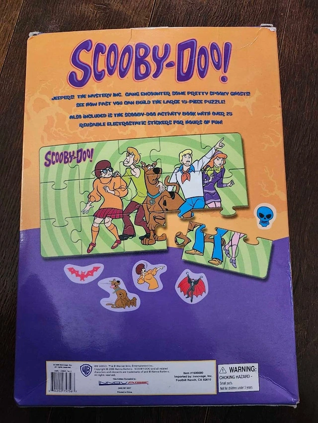 Get ready for mystery-solving fun with this Scooby-Doo activity book and giant floor puzzle! It includes a Scooby-Doo activity book with removable stickers for hours of entertainment. It has been opened, but is in good condition. If the ad is still up, the mystery-solving adventure is still available!
