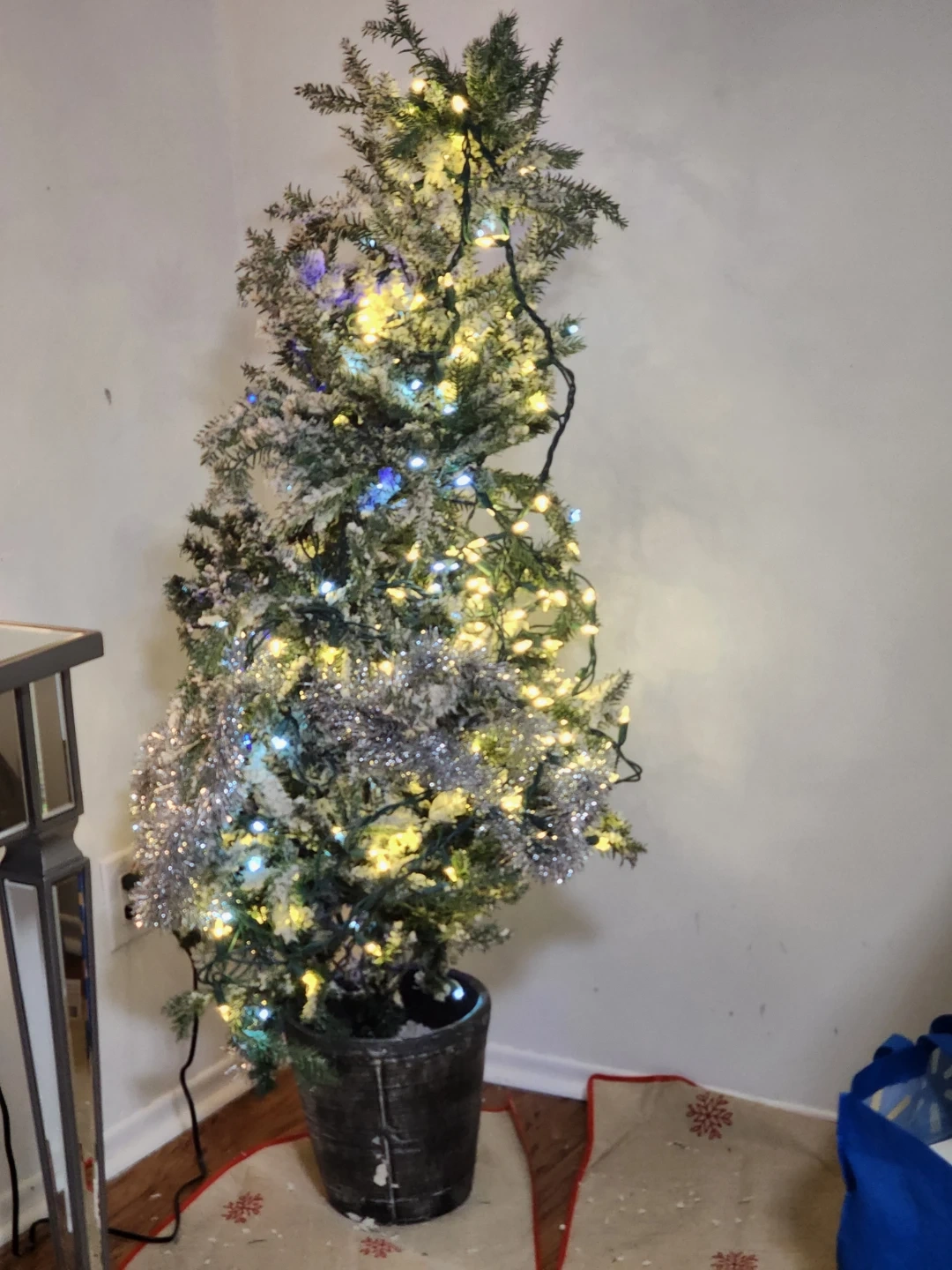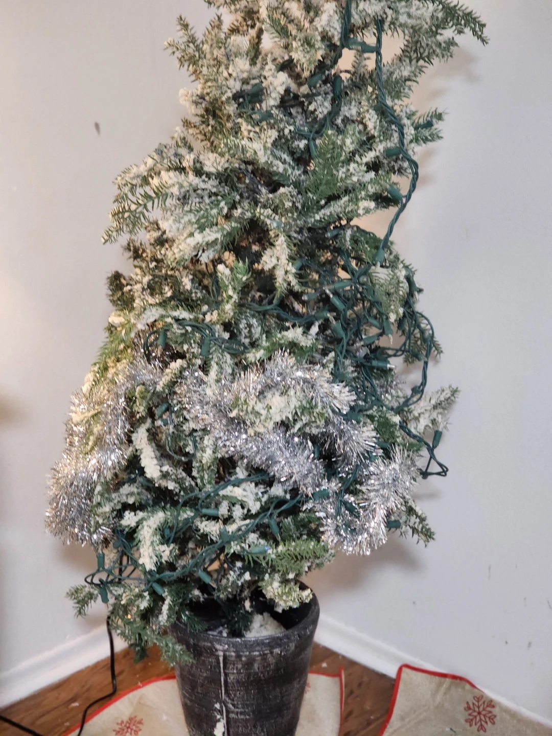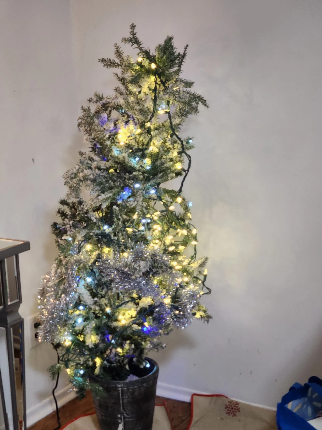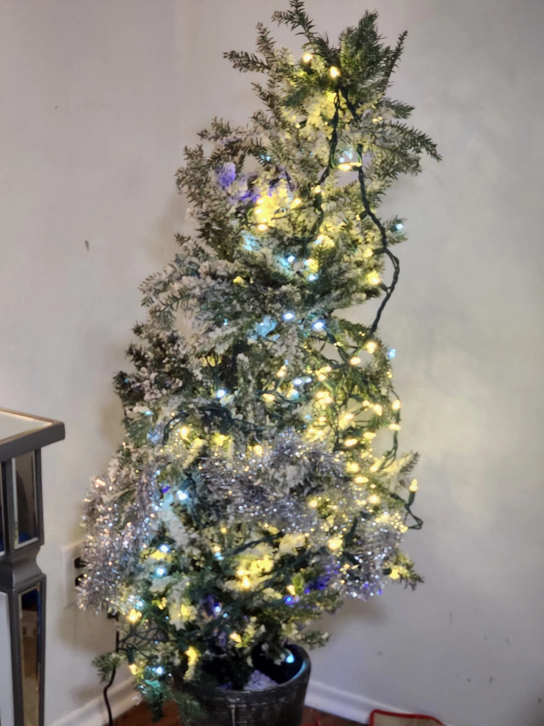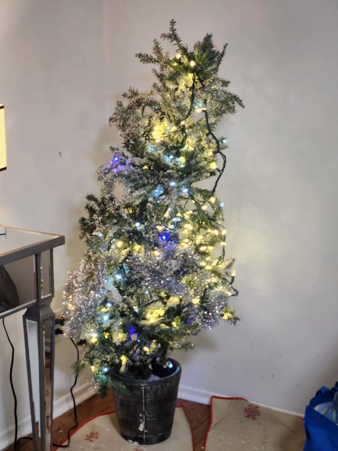 34Selling a pre-lit Christmas tree, perfect for adding some festive cheer to your home! It comes with a stand and is already decorated with lights and some tinsel. It's in great condition and ready to be enjoyed this holiday season