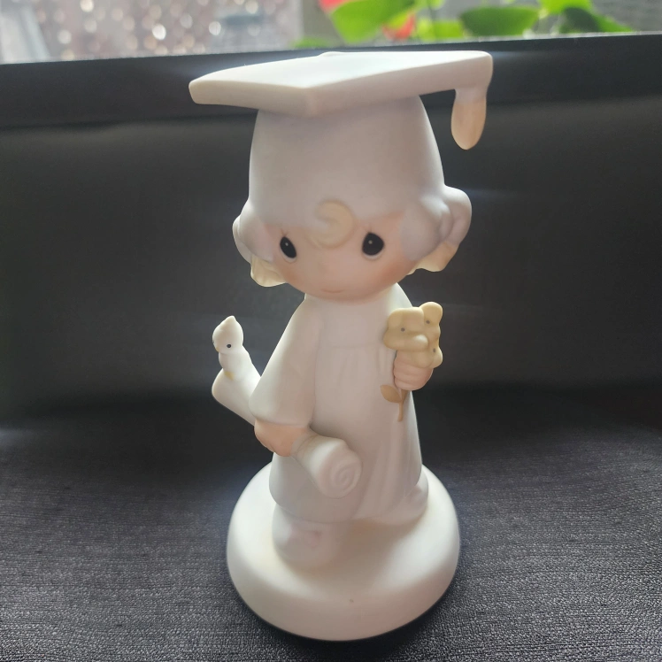 176Adorable Precious Moments figurine. A graduate in cap and gown, holding a diploma and flowers. Collectible figurine.