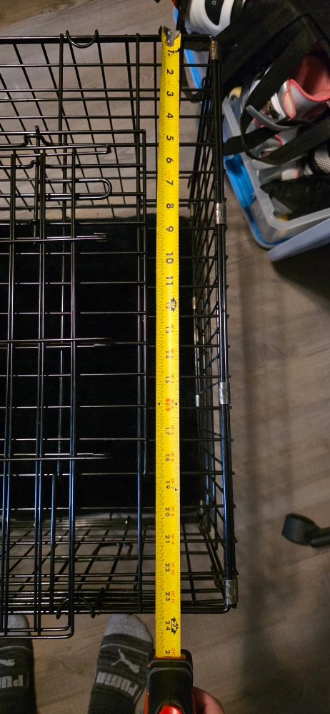 76Selling a Precision Pet black dog crate! It's in great shape and measures approximately 24 inches long, 18 inches wide, and 21 inches high. Perfect for your furry friend!