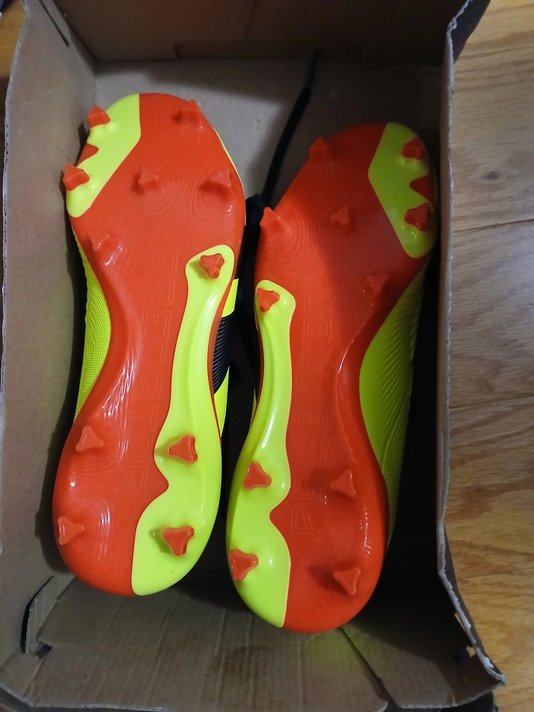 Selling brand new,a pair of Predator league soccer cleats in size 8. They come in the original box. The cleats are yellow and black, perfect for the field!