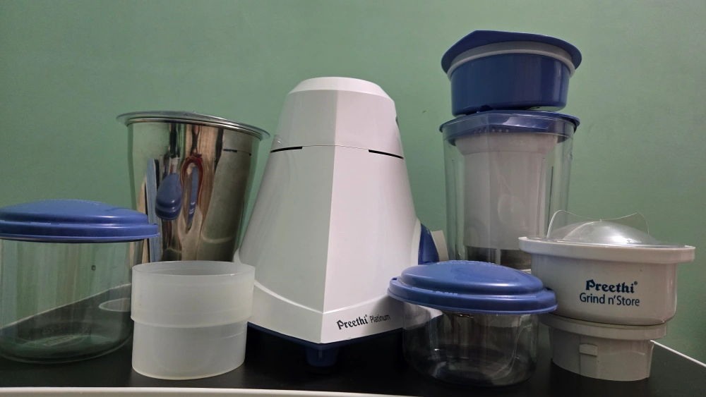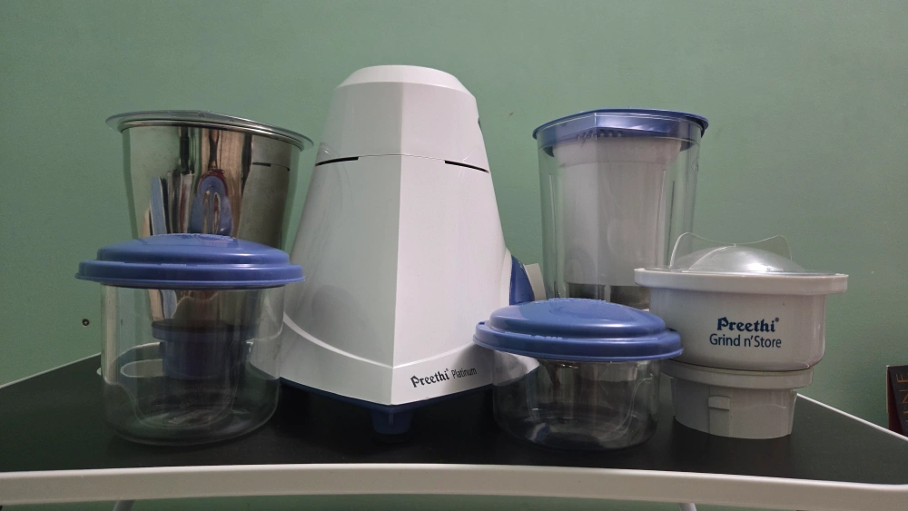Selling this Preethi mixer grinder with multiple jars for various purposes including grinding, mixing, juicing, milling spices etc. It has been sparsely used, well taken care of and is in great working condition. Also includes additional lid for the juicer and grind and store containers. Additionally, it has spare parts, including extra blade and accessories if needed to be changed anytime in future. Key features include: * Durable construction * Multiple jars for different uses * Efficient grinding capabilities Original price- $270, now selling for $180. In great working condition, available only due to relocation. Serious buyers only. P.S. If the ad's up, it's up for grabs!