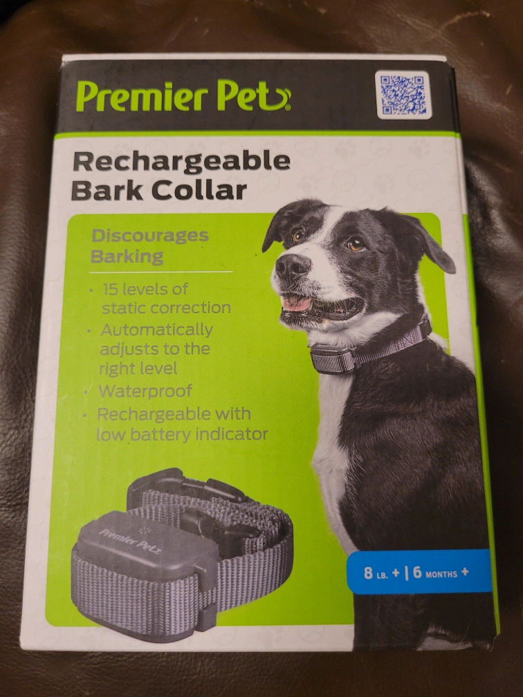 Selling a brand new Premier Pet Rechargeable Bark Collar, still in its original box! Key features include: - 15 levels of static correction - Automatically adjusts to the right level - Adjustable fit up to 28 inches - Waterproof - Rechargeable with low battery indicator What's included: Bark Control Collar, USB Charging Cable, Rechargeable Lithium-ion Battery, and Product Manual