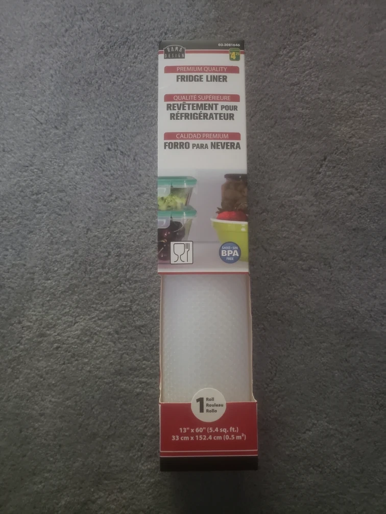 This fridge liner hasn't been used since purchase and is in great condition. Local Surrey Pickup / Dropoff Only. Phone : 7783028397 A fridge liner. Roll of liner with a bumpy texture. The package is marked as food safe and BPA-free. Keep your fridge organized and fresh with this liner.
