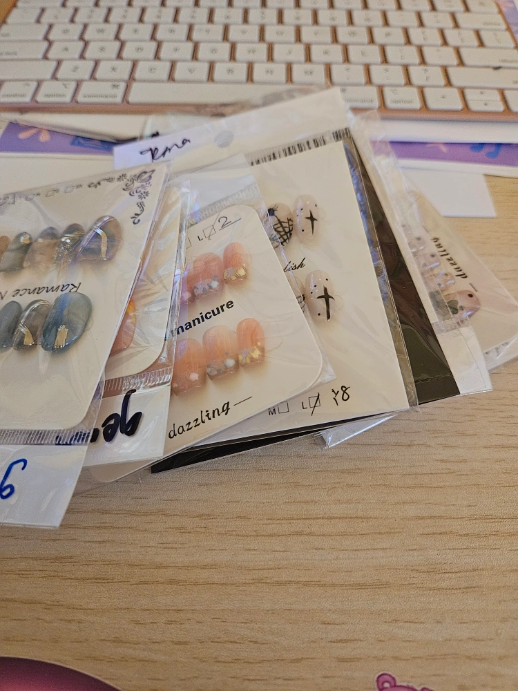 60Selling a variety of press-on nails! They come in different styles and sizes. Perfect for a quick and easy manicure size large