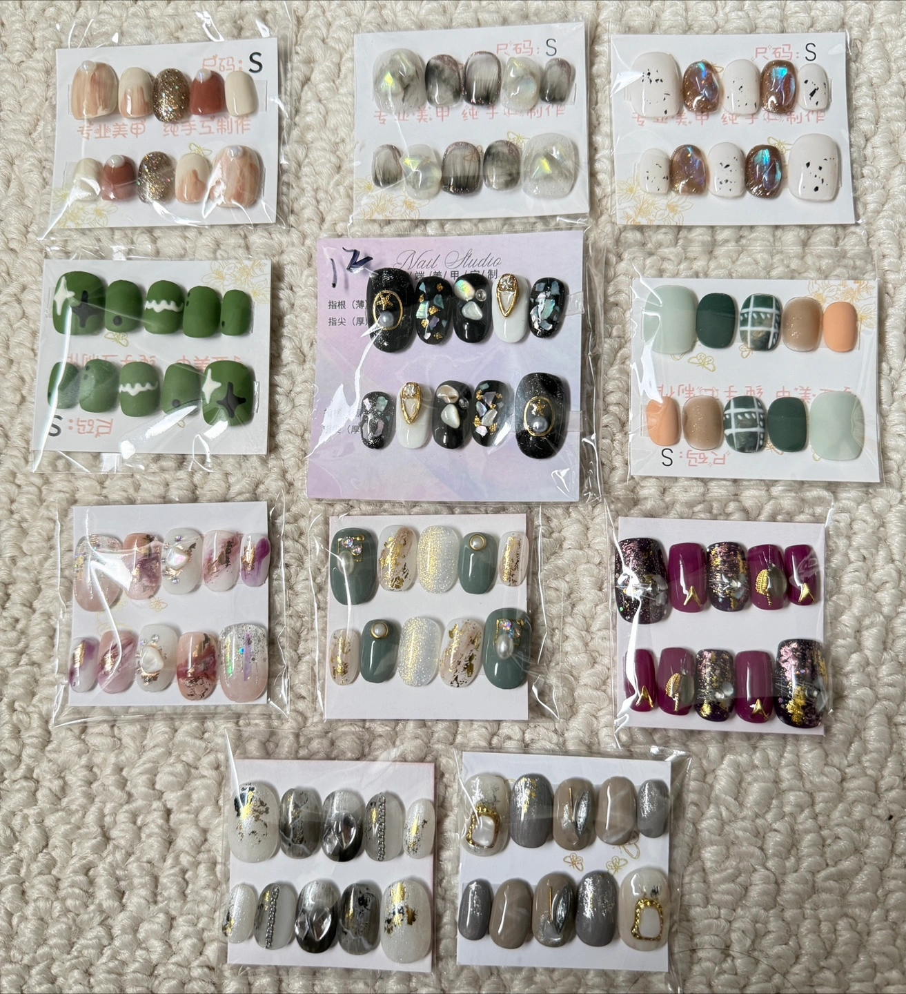 142A selection of brand new hand made press on nails from Nail Studio! Lots of different colours and designs to choose from. Great way to get a quick and easy manicure at home. $5/each, all for $40