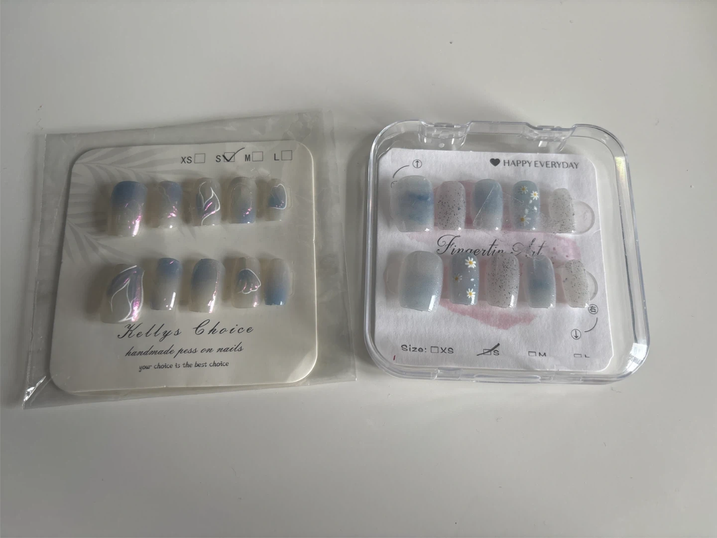 28Selling two sets of press-on nails Both in size small $3 each DOES NOT include any tools (e.g nail filer, glue tab etc)