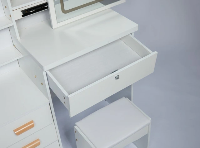 5Modern white vanity by Prestige Vanity with LED touch mirror, drawers, shelving, hidden pull-out storage, and padded stool. Wholesale price is $135 CAD each with a minimum of 8 units. Retail value is $249.99+. Pickup in Richmond Hill. Learn more at prestigevanity.com Perfect for Furniture Stores or Resellers Compact size fits condos and small bedrooms. All units are brand new and sealed in boxes. Message for serious wholesale inquiries.