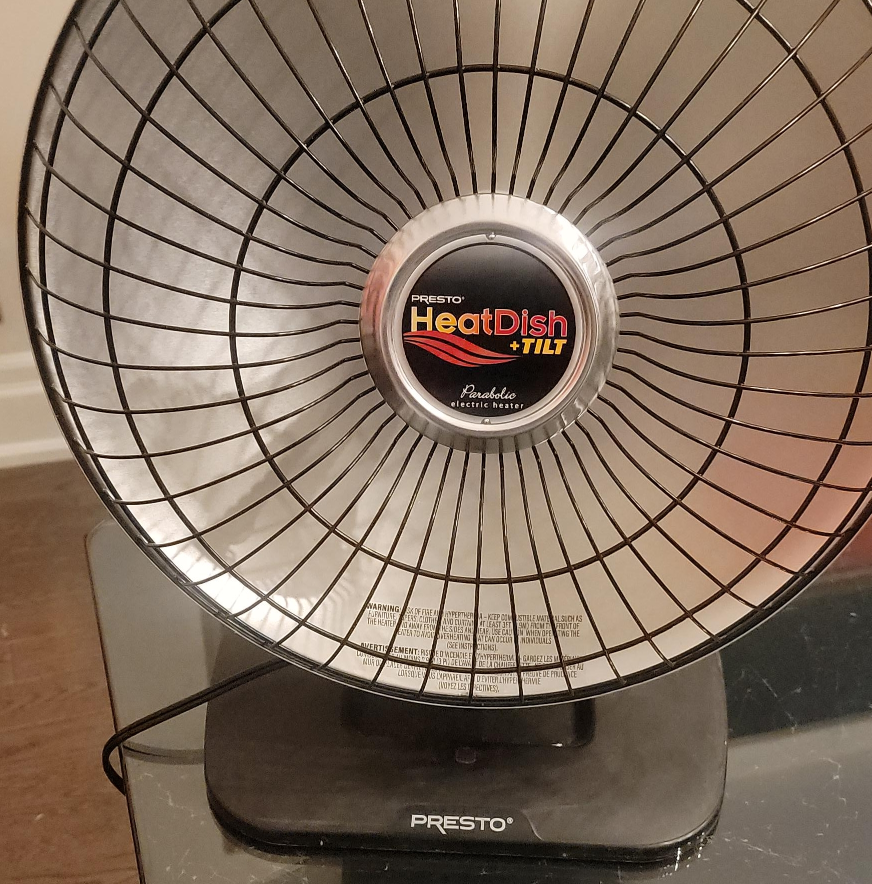 10Selling a Presto HeatDish + Tilt parabolic electric heater. It's in great shape and ready to keep you warm this winter! The heater also has tilt function for more focused heating.