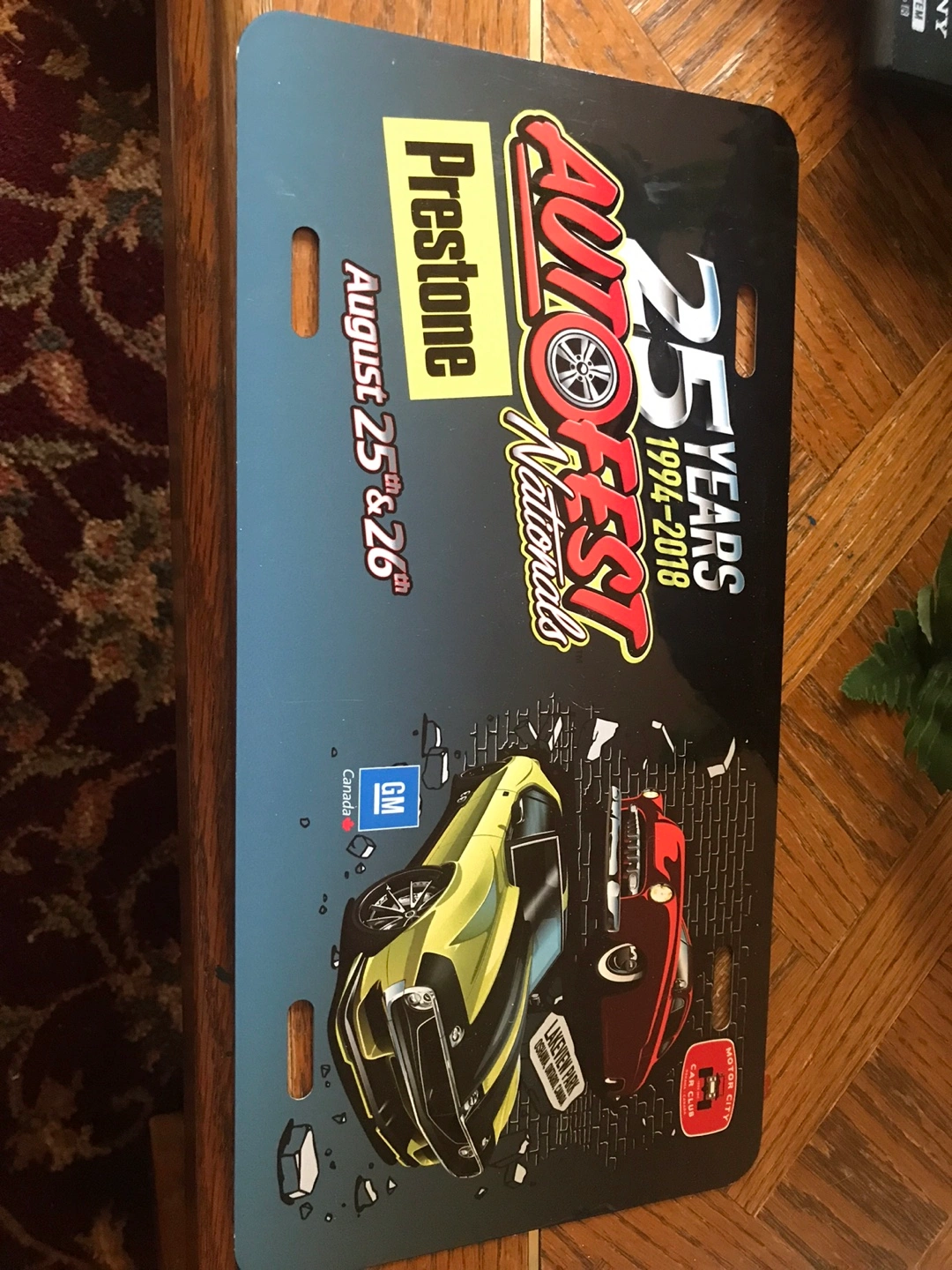 20Selling a Prestone AutoFest Nationals license plate. Features a cool design commemorating 25 years of the event (1994-2018). Great for car enthusiasts!