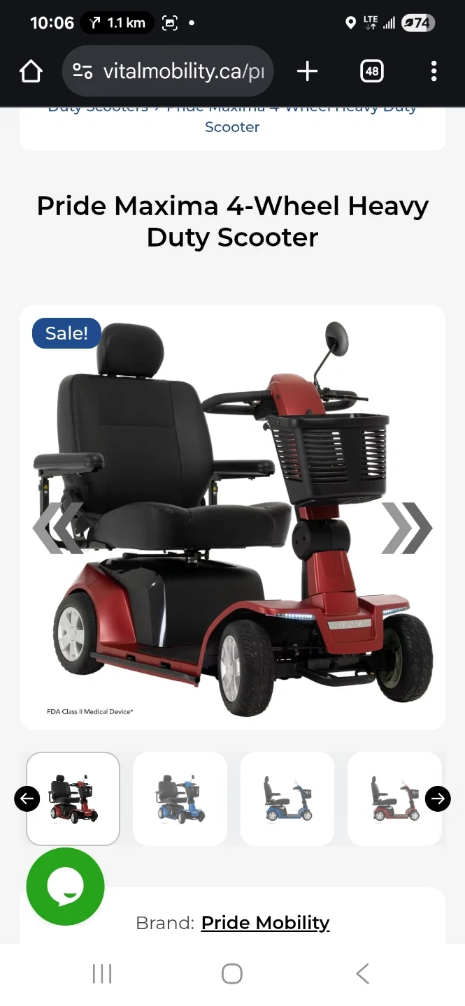 10Selling a Pride Maxima 4-Wheel Heavy Duty Scooter! It's a heavy-duty scooter designed for mobility and independence. It features a comfortable seat and a convenient front basket for your belongings